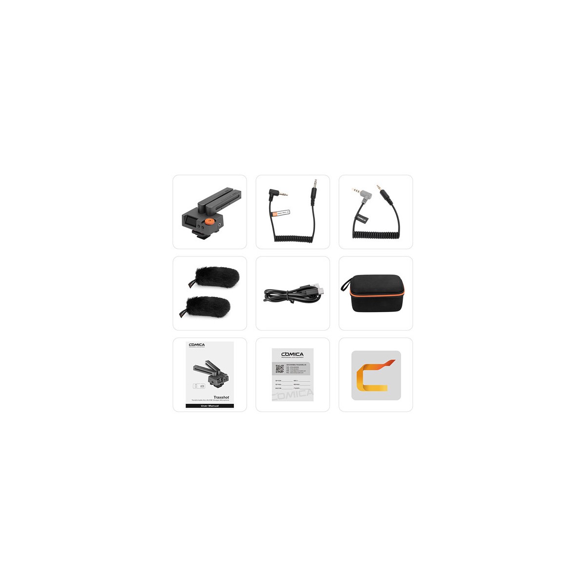 میکروفون Comica Audio Traxshot یک میکروفون شاتگان مناسب برای ضبط مصاحبههای دو نفره، کنسرتهای استریو و فیلمبرداری است. این میکروفون به همراه دوربینهای DSLR و بدون آینه و همچنین دستگاههای اندروید و iOS دارای جک هدفون قابل استفاده است.