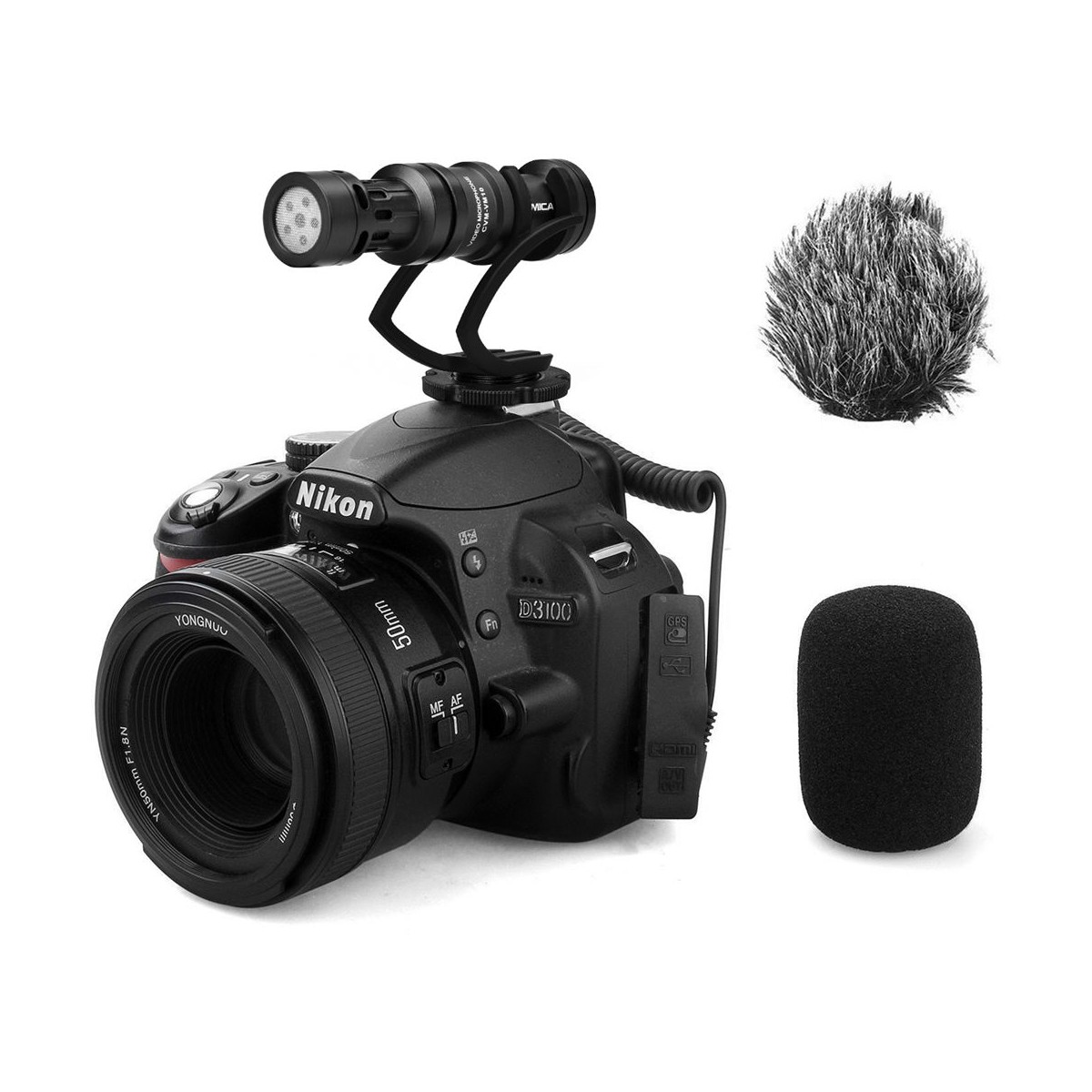 • کابل همراه با جک ۳.۵ میلی‌متری TRS برای اتصال به دوربین