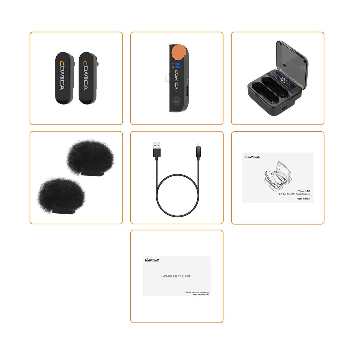 میکروفون کامیکا مدل Vimo S MI امکان صدابرداری همزمان از دو نفر را برای خبرنگاری و تولید محتوا مهیا کرده است. این کیت میکروفون شامل ۲ فرستنده دارای میکروفون داخلی با الگوی قطبی امنیدیرکشنال، یک گیرنده دو کاناله و کیس شارژ است. سیستم انتقال صدا در این میکروفون تاخیر بسیار پایین ۲۰ هزارم ثانیه‌ای به همراه دارد و تا برد ۲۰۰ متر قادر است صدای دریافتی را مخابره کند. در قسمت پشتی فرستنده‌ این کیت میکروفون، گیره وجود دارد که می‌توان از آن برای اتصال میکروفون بر روی لباس استفاده کرد.