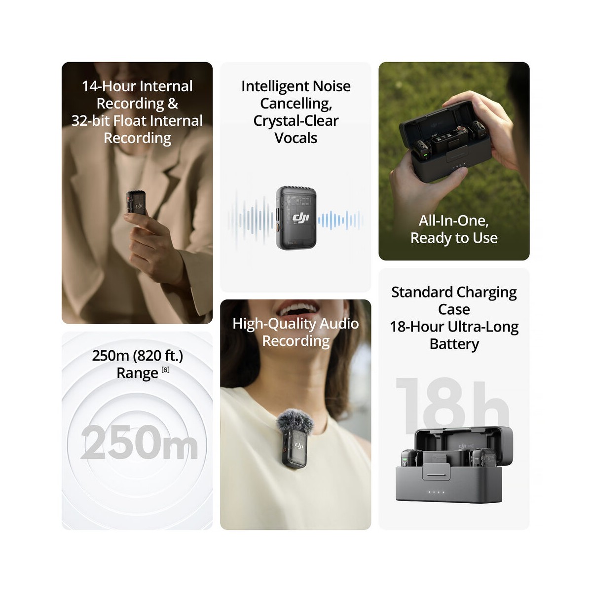 • دارای ۲ عدد فرستنده میکروفون‌دار گیره‌ای