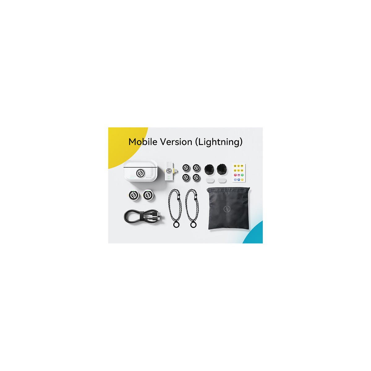 | محتویات جعبه | دو فرستنده، یک گیرنده موبایل لایتنینگ، یک جعبه شارژ نسخه موبایل، دو خز بادگیر، دو گیره پشتی، چهار گیره مغناطیسی، یک کابل USB-A به USB-C، دو گردنبند سیلیکونی، یک پک استیکر، دفترچه راهنما و یک کیسه |
