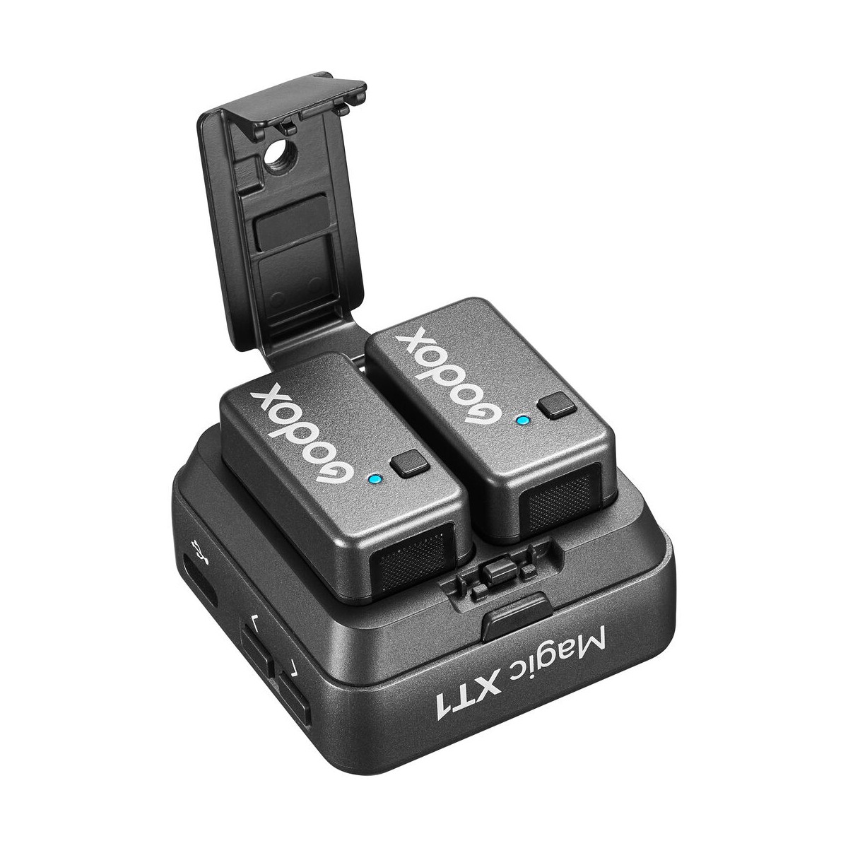 سیستم میکروفون بیسیم Godox Magic XT1-CL یک گزینه ایدهآل برای ضبط صدای دو نفره با کیفیت بالا است که برای سازندگان محتوا، ویدئو بلاگرها، روزنامهنگاران، مصاحبهگران و فیلمسازان طراحی شده است. این سیستم با ارائه صدای شفاف، تأخیر کم و قابلیت اتصال پایدار، تجربهای حرفهای برای ضبط صدا فراهم میکند. در ادامه به بررسی ویژگیها، مشخصات فنی، عملکرد و مزایای این سیستم میپردازیم.