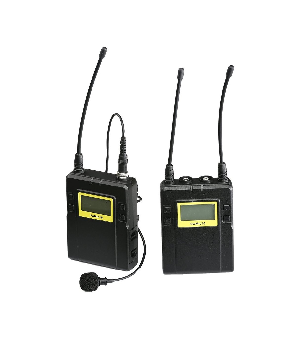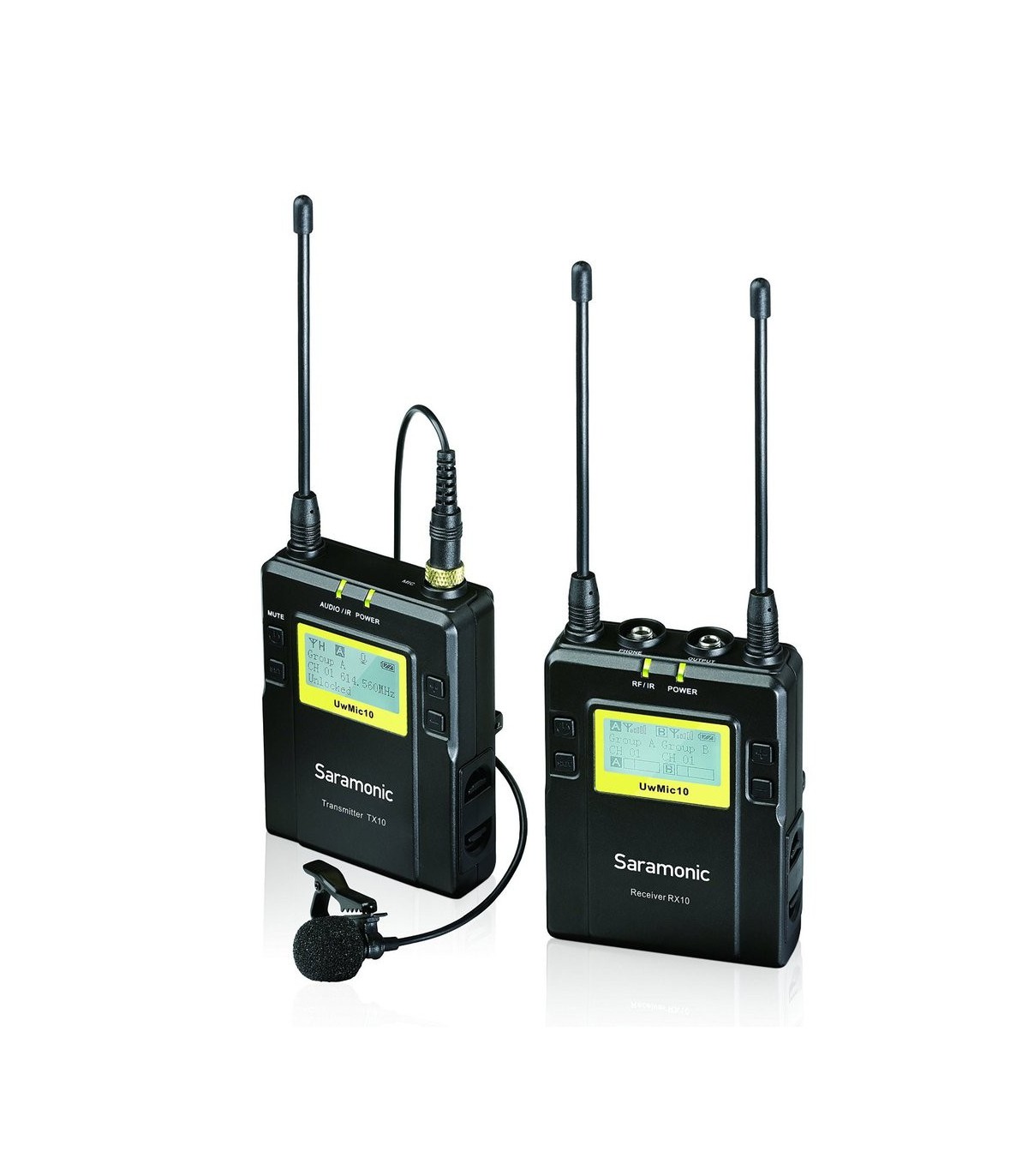 لازم به ذکر است که گیرنده و فرستنده این سیستم صدابرداری از نوع بیسیم میباشد. گیرنده RX-10 از یک خروجی هدفون مجزا بهره میبرد که برای مانیتورینگ و نظارت بر صدای در حال ضبط کاربرد دارد. این فرستنده توسط دو باتری سایز AA تغذیه میشود. همچنین فرستندهای که همراه این مجموعه است توسط گیرهای که دارد به آسانی بر روی لباس نصب میشود و میتوان کنترل تنظیمات مختلف را از روی آن در دست گرفت. بر روی فرستنده و گیرنده یک نمایشگر کوچک ولی خوانا از نوع LCD تعبیه شده است که مشاهده و انجام تنظیمات را آسانتر خواهد کرد. این فرستنده نیز با دو باتری سایز AA کار میکند و تا حداکثر فاصله ۱۰۰ متری با گیرنده سینک خواهد بود. میکروفون یقهای نیز از نوع همهسویه میباشد که به فرستنده وصل میشود و قادر است تا سیگنالهای صوتی دریافتی از تمام جهات را رکورد کند. به همین دلیل این میکروفون برای استفاده در جشنهای عروسی، مصاحبه، کنفرانس و ... انتخاب بسیار مناسبی است. راهاندازی و استفاده از این سیستم صدابرداری نیز آسان بوده و مشکلی از این بابت نخواهید داشت.