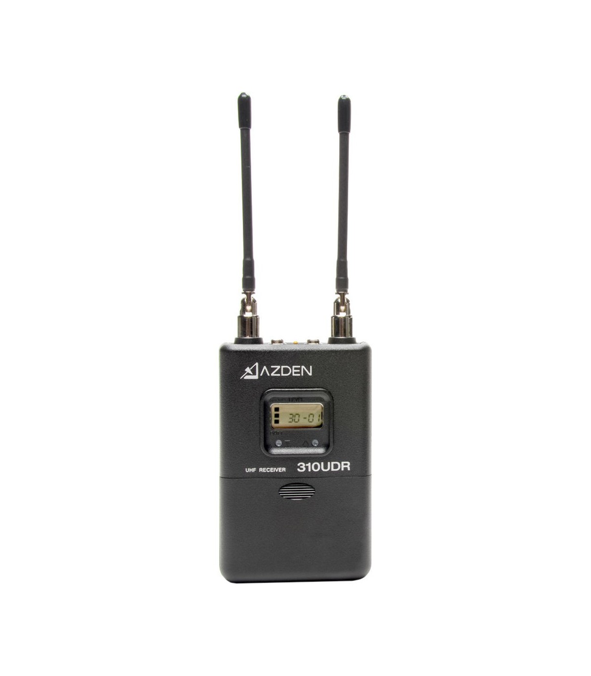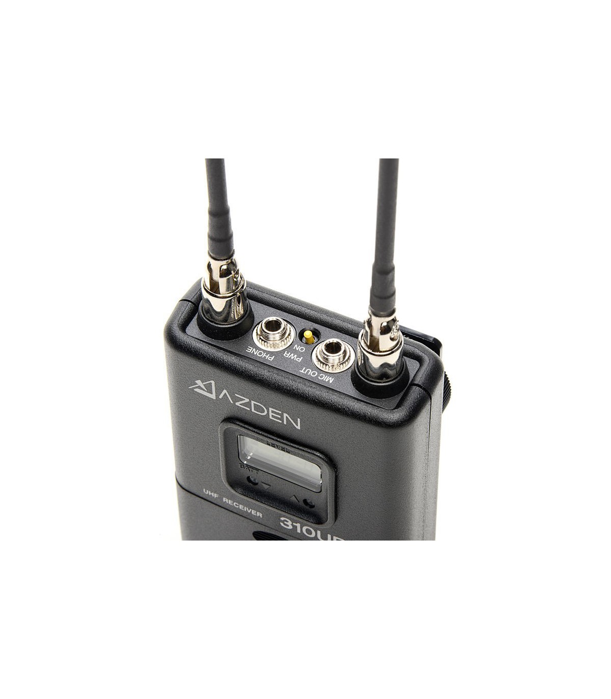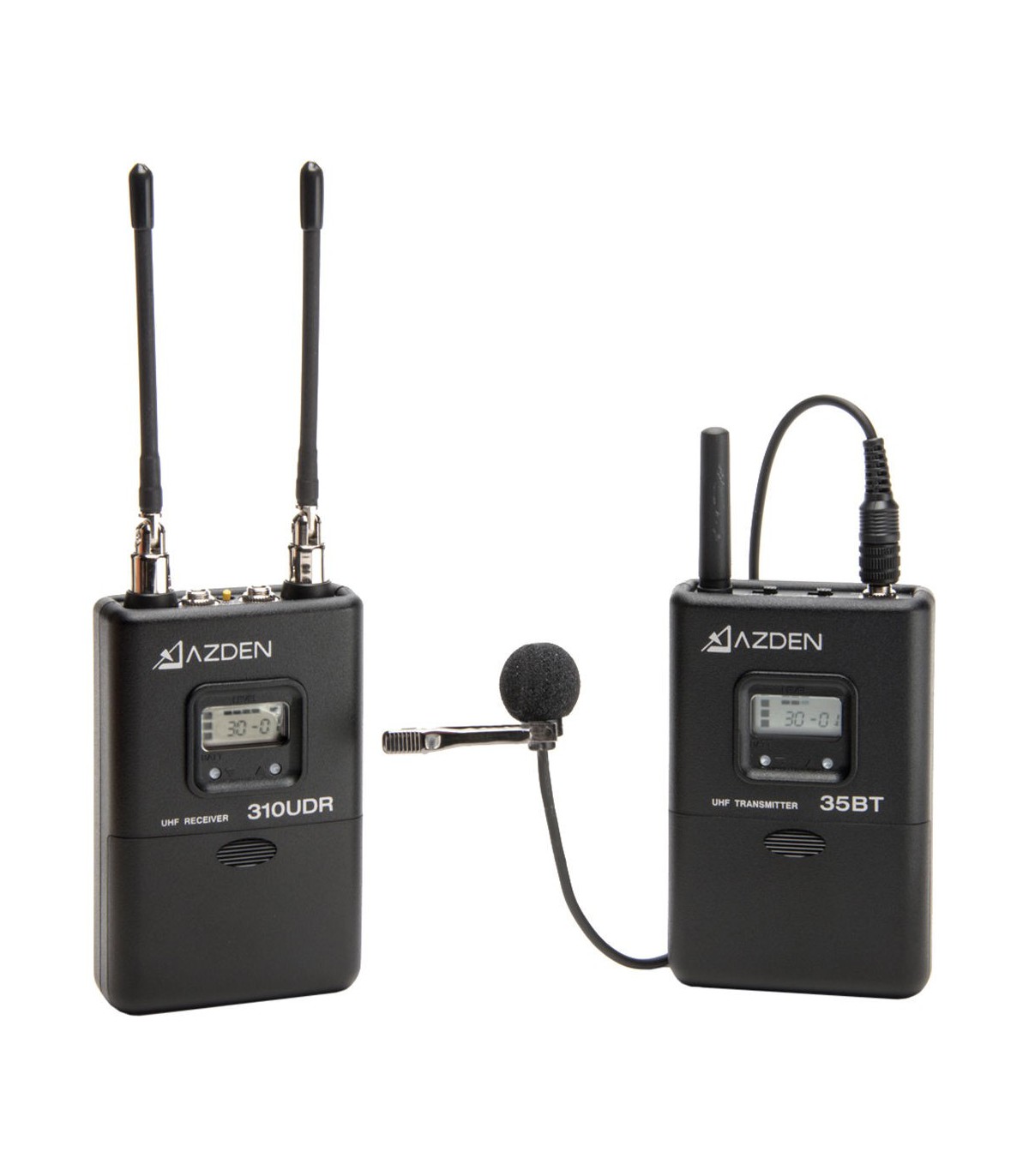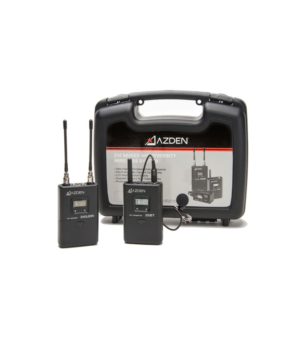 سیستم 310LT UHF یک محصول قدرتمند و در عین حال مقرونبهصرفه از کمپانی Azden میباشد که برای ضبط دقیق و باکیفیت صدا میتوان از آن بهره برد. این سیستم بر روی کانال UHF کار میکند و از محدوده فرکانس ۵۶۶٫۱۲۵ تا ۵۸۹٫۸۷۵ مگاهرتز را پشتیبانی میکند. همچنین امکان انتخاب ۱۸۸ فرکانس مختلف از روی کانال UHF فراهم است. این سیستم صدابرداری متشکل از گیرنده رو دوربینی 310UDR، فرستنده 35BT و میکروفون یقهای EX-503L میباشد. گیرنده 310UDR بر روی کفشک دوربین نصب میشود و فرستنده 35BT قابل نصب بر روی اتصال است. این گیرنده از دو آنتن چرخشی با حساسیت بالا بهره میبرد که دریافت دقیق و همهجانبه سیگنالهای ارسالی را به همراه دارد. همچنین بر روی فرستنده و گیرنده این سیستم صدابرداری، یک نمایشگر LCD کوچک تعبیه شده که برای مشاهده وضعیت هر یک از دستگاهها کاربرد دارد. لازم به اشاره است که شرکت سازنده به منظور نظارت دقیق و لحظهای بر روی صدای در حال ضبط، یک خروجی هدفون بر روی بدنه گیرنده قرار داده است. هم گیرنده و هم فرستنده توسط دو باتری سایز AA کار میکند که باید جداگانه تهیه شود.