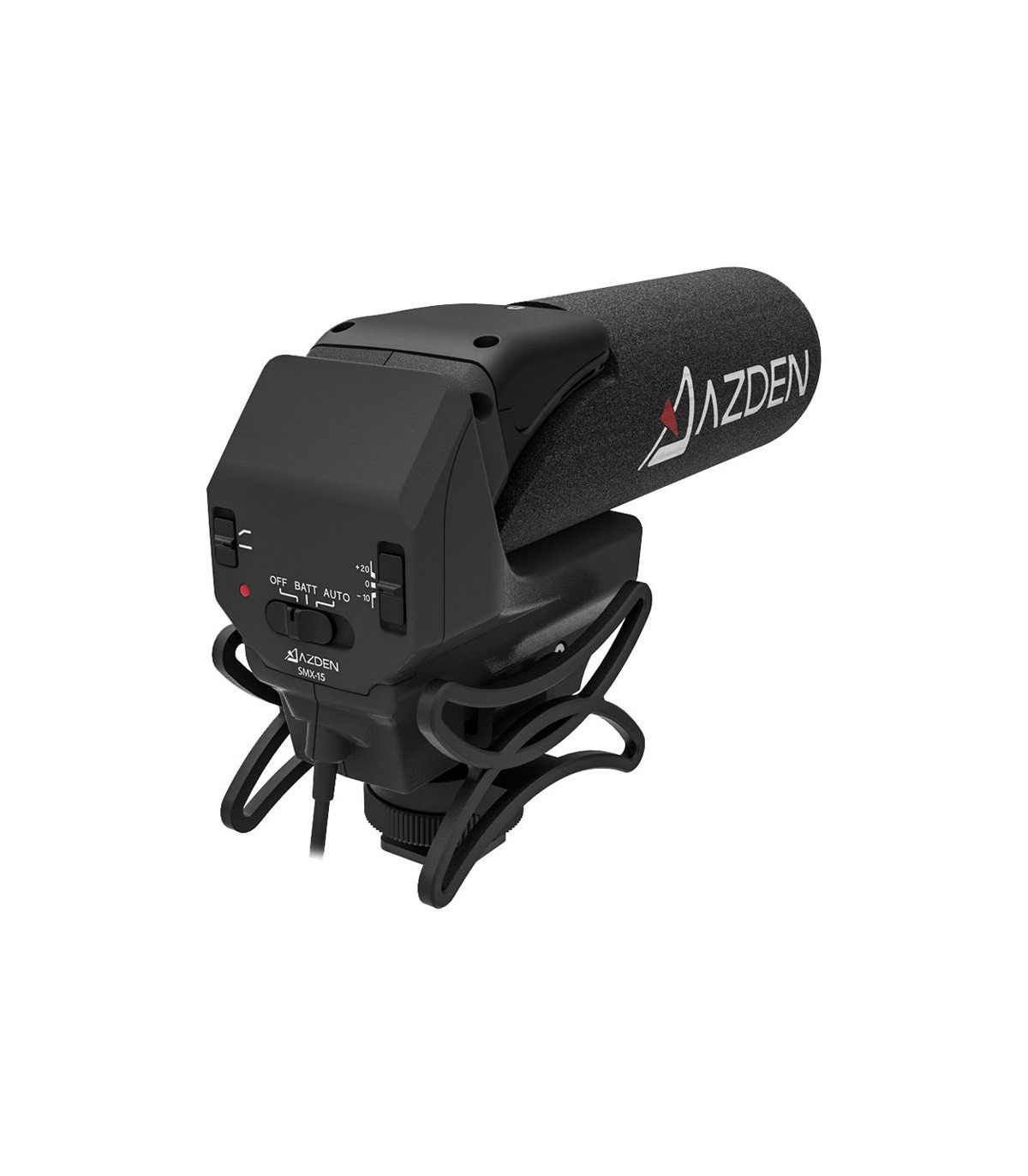 SMX-15 یک میکروفون جهتدار استریو ساخت شرکت Azden است. این میکروفون برای استفاده روی دوربینهای DSLR طراحی شده است.SMX-15 با توجه به محدوده فرکانسی گسترده از ۴۰ هرتز تا ۲۰ کیلوهرتز و همچنین سیستم کاهشدهنده نویز، صدای محیط را با تفکیکپذیری و دقت بالایی به ثبت میرساند. این مدل ۱۴.۵ سانتیمتر طول داشته و به همراه بادگیر و کفشک رو دوربینی عرضهشده است.SMX-15 یک میکروفون الکترت است که با یک باتری سایز AA تغذیه میشود که البته باتری باید به صورت جداگانه تهیه شود. این میکروفن رودوربینی، دارای خروجی ۳.۵ میلیمتری است. SMX-15 همچنین یک میکروفن مناسب برای ضبط صداها ضعیف نیز به شمار میرود؛ چرا که میتواند سیگنالها را با گِینی(Gain) بیست دسیبلی تقویت نماید.