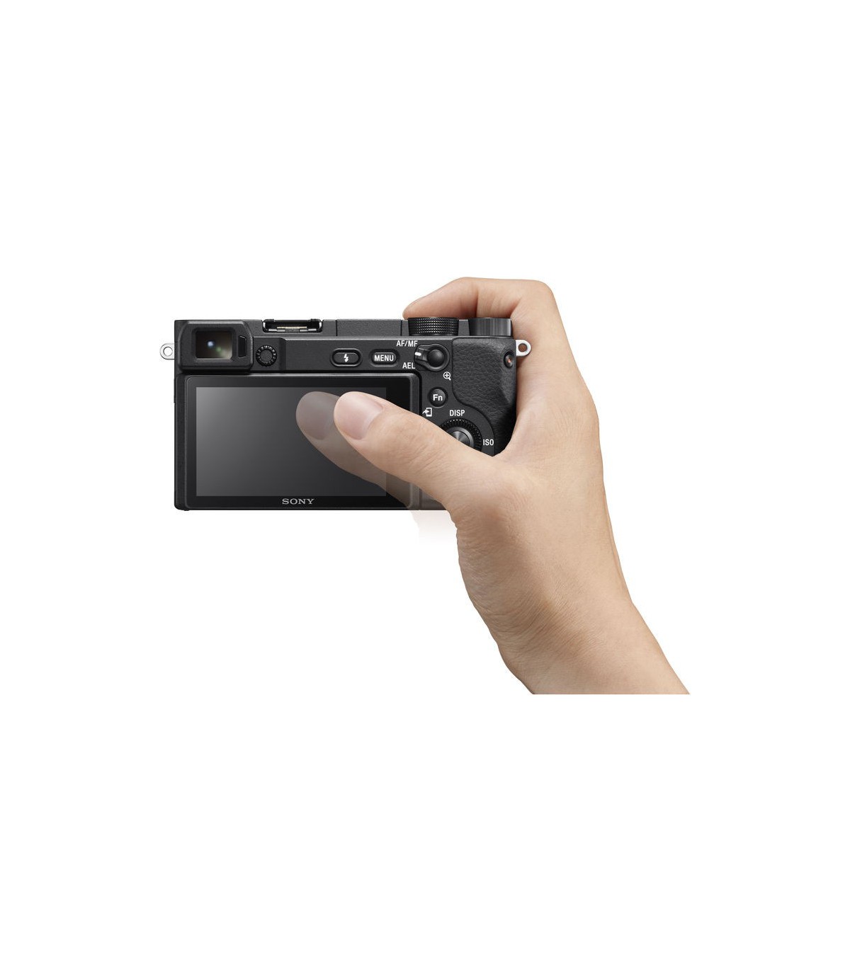 علاوه بر ویوفایندر، در بخش پشتی دوربین سونی a6400 نمایشگری ۳ اینچی از نوع لمسی نیز تعبیه شده است. این نمایشگر با قابلیت چرخش ۱۸۰ درجهای به سمت بالا و ۷۴ درجهای به سمت پایین، به شما توانایی کادربندی و فیلمبرداری در شرایط گوناگونی را میبخشد. نمایشگر لمسی علاوه بر راحت نمودن تنظیمات قابلیت استفاده برای فوکوس را هم در اختیارتان قرار خواهد داد.