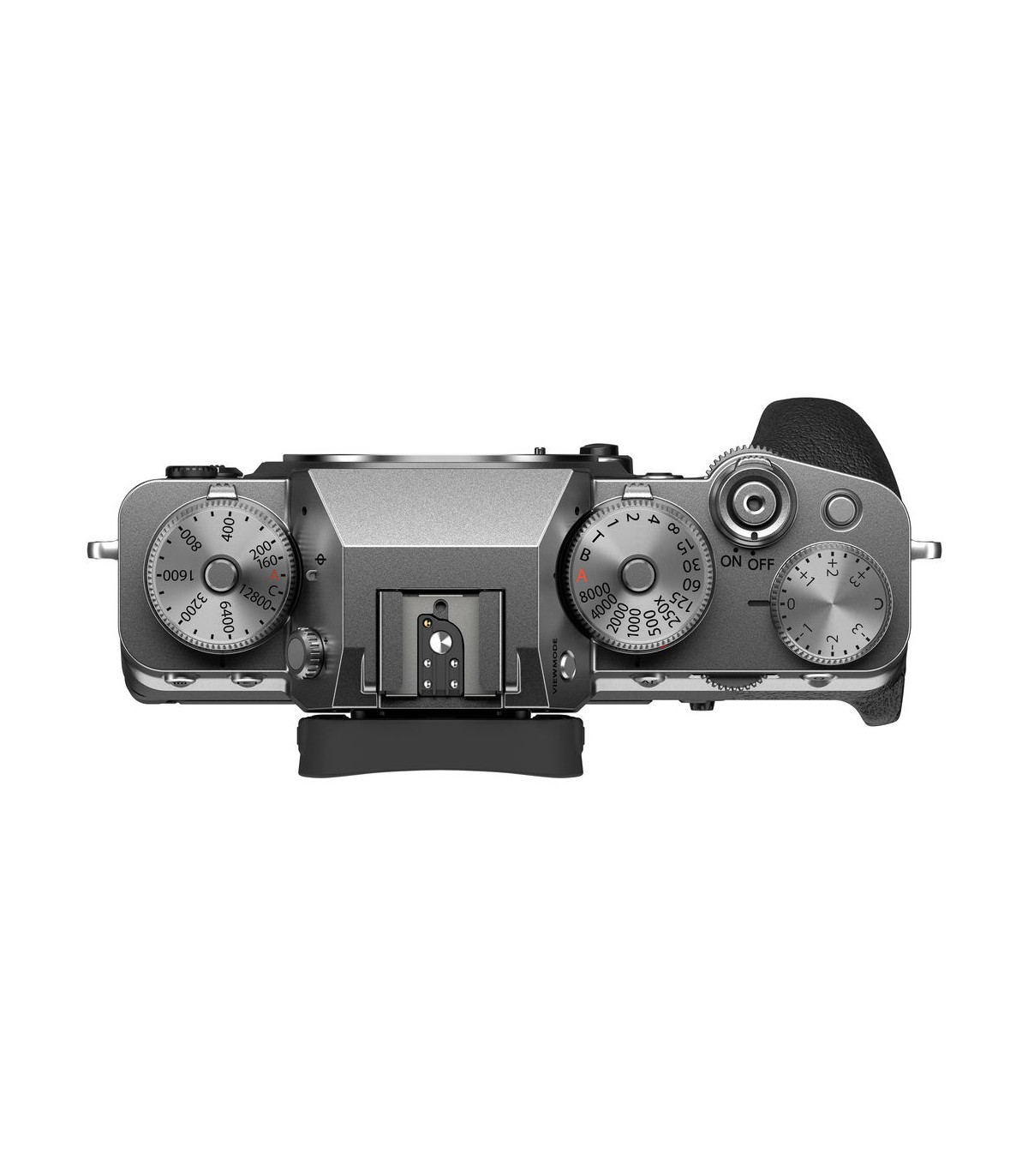 در بخش بالایی دوربین دکمهها و پیچهای تنظیم دوربین قرار گرفتهاند که امکان تغییر سریع نوردهی و سایر تنظیمات را به کاربر میدهند. این دکمهها شامل کلید تغییر حساسیت ISO، سرعت شاتر و جبران نوردهی هم میشود که امکان تغییر تنظیمات را حتی زمانی که دوربین خاموش است برای شما فراهم میکند.
