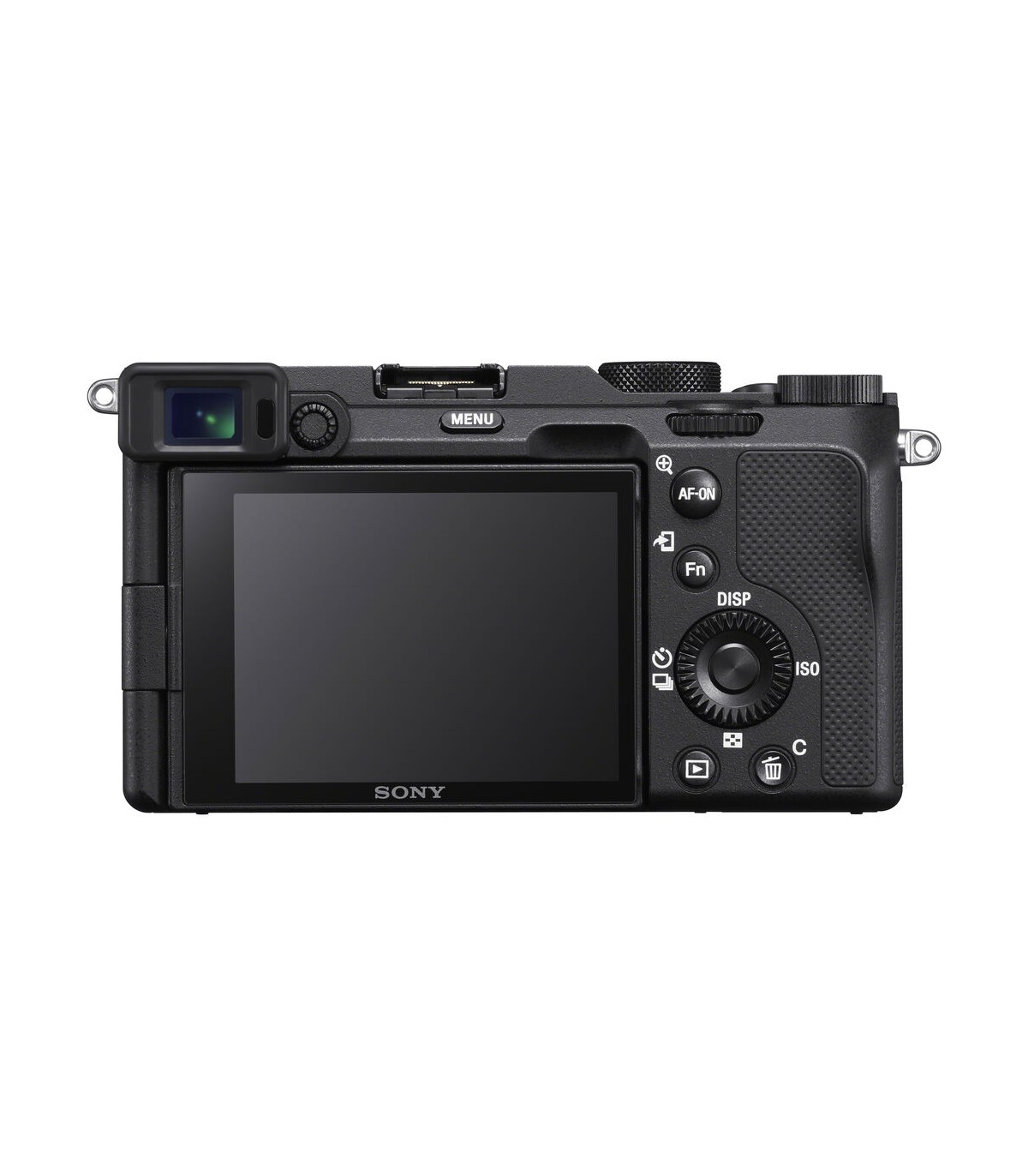 در مقایسه با سایر دوربین عکاسی سری ۷ سونی، آلفا a7C دارای طراحی روانتر و ابعاد جمع و جورتری است، تا جایی که میتوان گفت شبیه به دوربین کامپکت است. منظره یاب این دوربین دارای یک پنل OLED با قطر ۰.۳۹ اینچ و رزولوشن ۲.۳۶ میلیون نقطه است و در کنار آن، از یک نمایشگر ۳ اینچی لمسی برای کار با دوربین استفاده شده است. از دیگر ویژگیهای این دوربین میتوان به وای فای، بلوتوث داخلی و امکان اتصال ریموت کنترل به آن اشاره کرد.