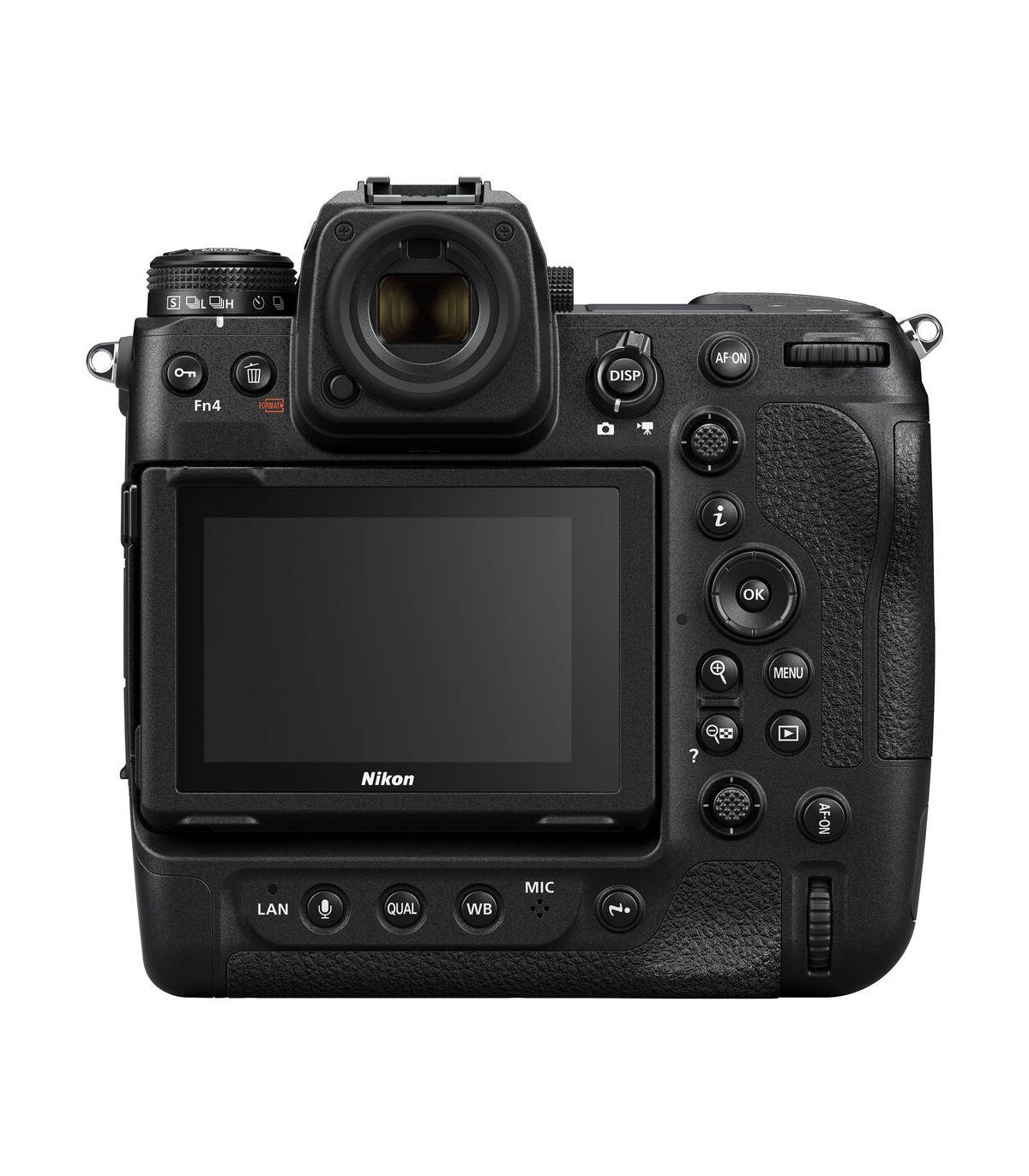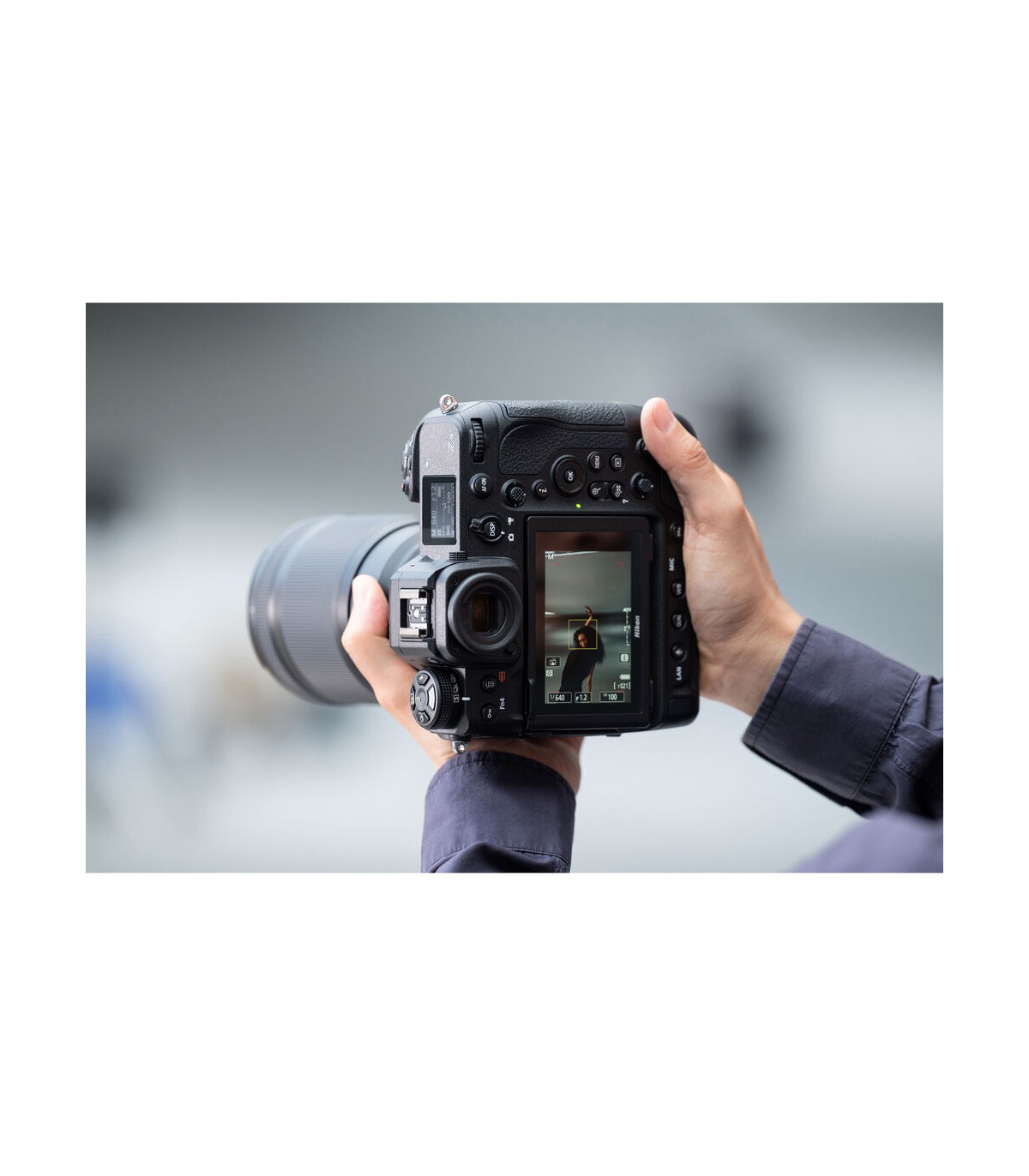 • دوربین Z9 نیکون، اولین دوربین این شرکت است که دارای نمایشگر ۴ محوره ۳و۲ اینچی ۲.۱ میلیون نقطهای لمسی است که میتوان آن را در زاویههای مختلف تنظیم کرد و در هنگام استفاده از دوربین به صورت افقی و عمودی نیز میتوان آن را در حالت مناسب تنظیم کرد.