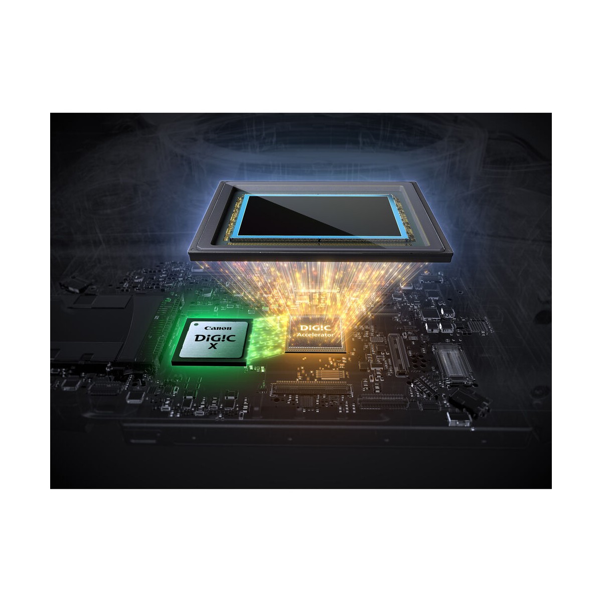حسگر جدید R5 Mark II رزولوشن بالای مدل قبلی را حفظ میکند و با طراحی Stacked و Back-Illuminated فضای لازم برای پردازنده تصویر جدید کانن، DIGIC Accelerator را فراهم میکند. این دوربین با استفاده همزمان از پردازشگر قدرتمند DIGIC X، دادههای خام تصویری را با مجموعه دادههای یادگیری عمیق (Deep-Learning) پردازش میکند. در نتیجه پیشرفتهای مختلفی در پیگیری و تشخیص سوژه، عکاسی پیشپیوسته (Pre-continuous)، عکاسی بدون قطعی، رزولوشن ویدیو، زمان ضبط حداکثر و موارد دیگر را حاصل شده است. این امر، کانن R5 Mark II را به ابزاری قدرتمند و جامع برای خالقان حرفهای تبدیل میکند.