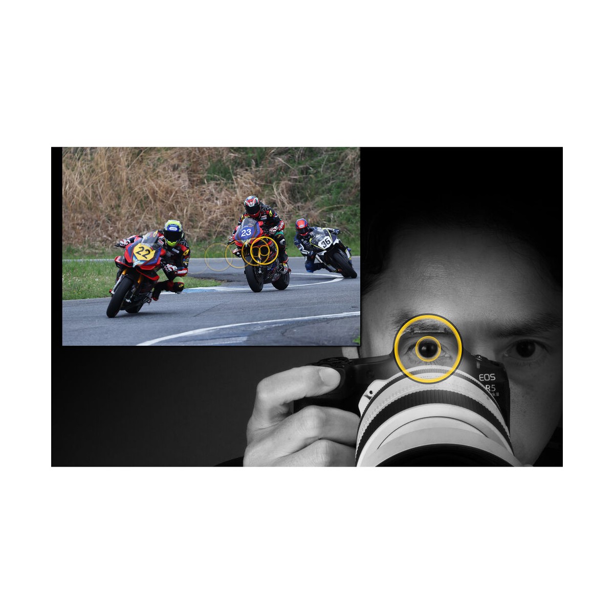 سرعت پردازشی بهبودیافته باعث افزایش عملکرد سیستم فوکوس خودکار سری EOS R میشود. این سیستم فوکوس خودکار، از دادههای یادگیری عمیق در فوکوس خودکار دو پیکسل هوشمند خود استفاده میکند تا پیشرفتهایی در تشخیص و پیگیری موضوع ارائه دهد و همچنین ویژگی فوکوس کنترل چشم را که در EOS R3 معرفی شد، بهبود بخشد.
