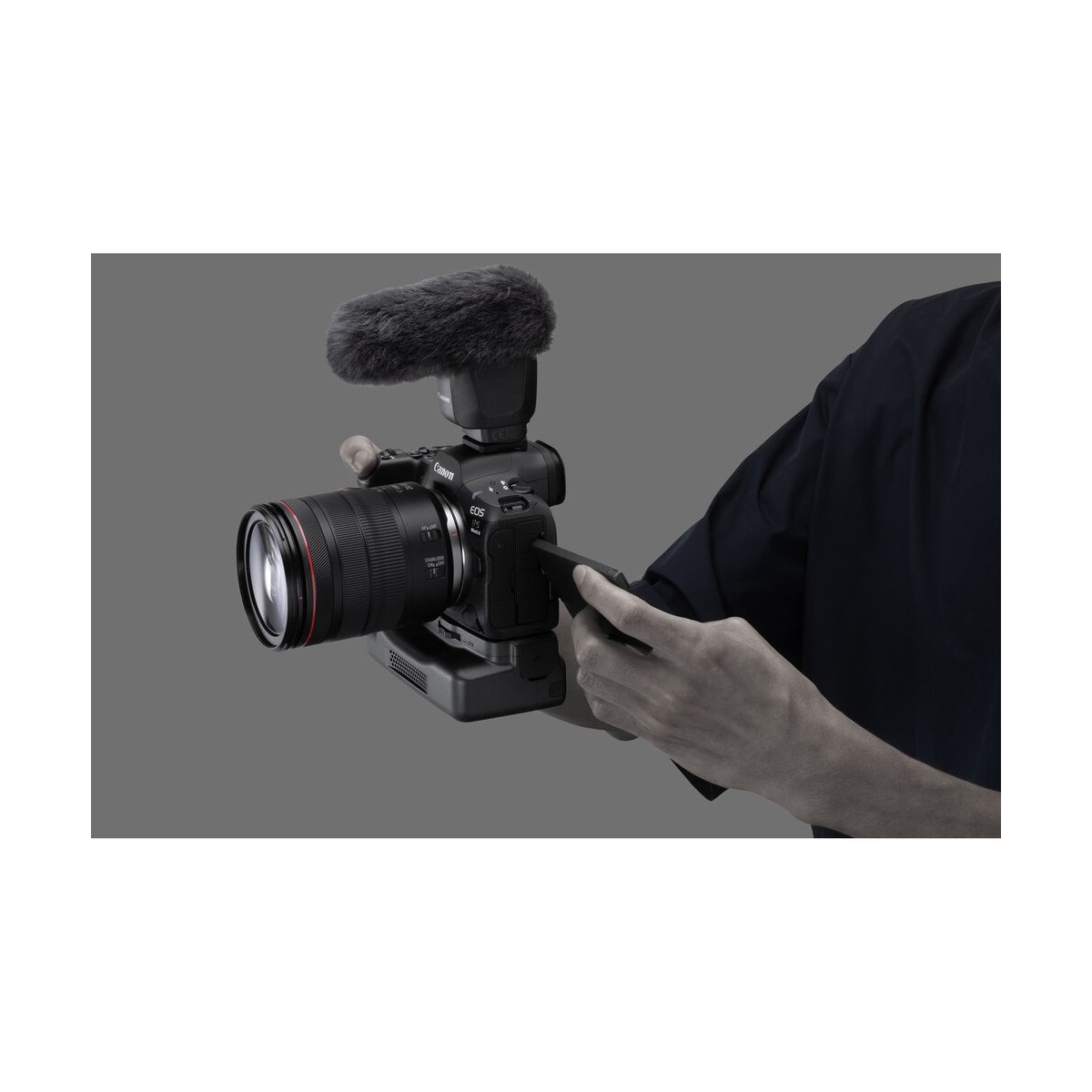 • باتری لیتیوم یون LP-E6P با ظرفیت بالاتر که برای ویدیوهای 8K، سرعتهای درایو بالا و سایر قابلیتهای سطح بالا ضروری است. البته دوربین با LP-E6N و LP-E6NH با قابلیتها و عمر محدود نیز قابل استفاده است.