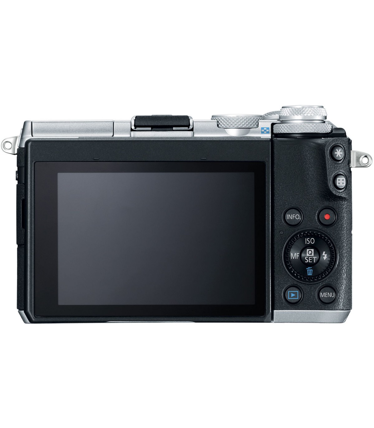 کانن برای کادربندی دقیق و فوکوس راحت بر روی سوژه در طراحی این دوربین از بک نمایشگر سه اینچی LCD با تفکیکپذیری ۱.۰۴ میلیون نقطه استفاده کرده است. این نمایشگر لمسی قابلیت چرخش در محور افقی را دارد که در عکاسی و فیلمبرداری و فیلمبرداری در زوایای تنگ، میتواند بسیار کارآمد باشد. لازم به ذکر است که این دوربین بدون آینه کانن به ویوفایندر مجهز نبوده و اگر تمایل دارید که عکسهای خود را از درون ویزور دوربین به ثبت برسانید، باید به صورت جداگانه ویوفایندر مخصوصی که کانن برای M6 طراحی کرده است را تهیه کنید.
