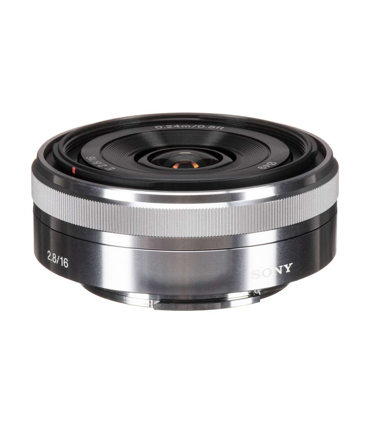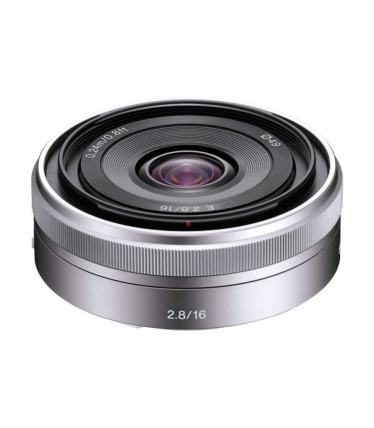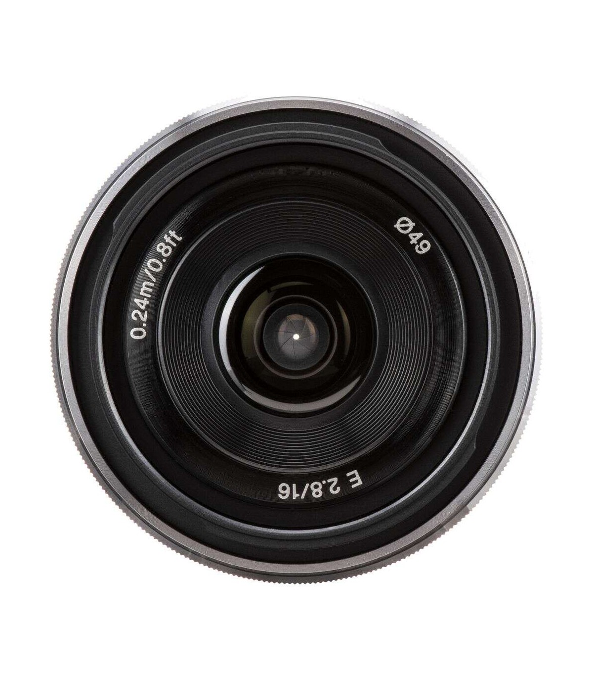 لنز سونی E 16mm f/2.8 یک لنز سبک و جمع و جور با فاصله کانونی معادل 24mm است که برای دوربین های بدون آیینه سونی با دهانه لنز E-mount و حسگر کراپ سنسور (APS-C) تولید و عرضه شده است. با استفاده از این لنز می توان به راحتی تصاویر عریضی از مناظر ثبت کرد. بیشینه گشودگی دیافراگم f/2.8 این لنز، انتخاب آن را برای استفاده در شرایط کم نور مناسب کرده است. استفاده از یک المان اسفریکال نیز از خطاهای رایج لنز پیشگیری می کند. موتور فوکوس خودکار این لنز عملکردی سریع و بی صدا دارد که برای فیلمبرداری بسیار مناسب است. ساز و کار فوکوس داخلی نیز مانع از تغییر طول لنز به هنگام انجام فرآیند فوکوس می شود. دیافراگم 7 تیغه گرد نیز بوکه هایی زیبا و با کیفیت ایجاد می کند. استفاده از مبدل های Ultra-Wide و Fisheye نیز با این لنز ممکن است که فاصله کانونی آن را به ترتیب به 18mm و 15mm تغییر می دهد.