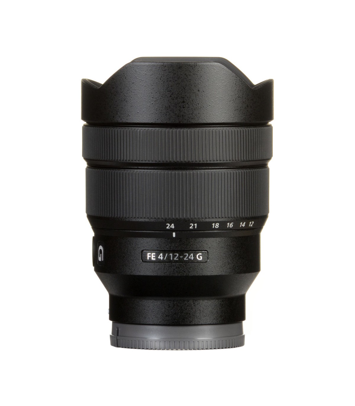 سونی FE 12-24mm f/4 G یک لنز زوم واید مخصوص دوربینهای بدون آیینه فولفریم سونی است. این فاصله کانونی مخصوص دوربینهای فولفریم بدون آیینه سونی مانند سری a7 طراحی شده است، اما میتوان از آن روی دوربینهای دارای حسگر APS-C این شرکت نیز استفاده کرد. در صورت استفاده از این لنز روی دوربینهای غیر فولفریم سونی، فاصله کانونی آن به معادل ۱۸-۳۶ میلیمتر در دوربینهای Full Frame افزایش مییابد. زاویه دید این لنز با توجه به فاصله کانونی واید آن برابر ۸۴ تا ۱۲۲ درجه است که محصول فوق را برای عکاسی طبیعت، عکاسی منظره و عکاسی خیابانی مناسب ساخته است.