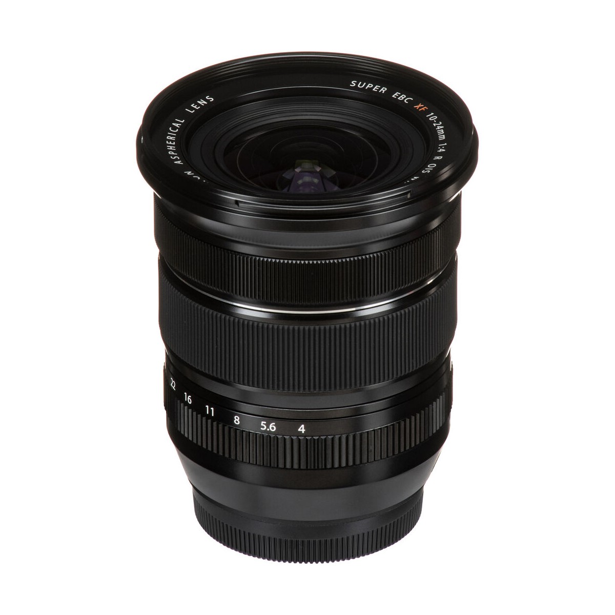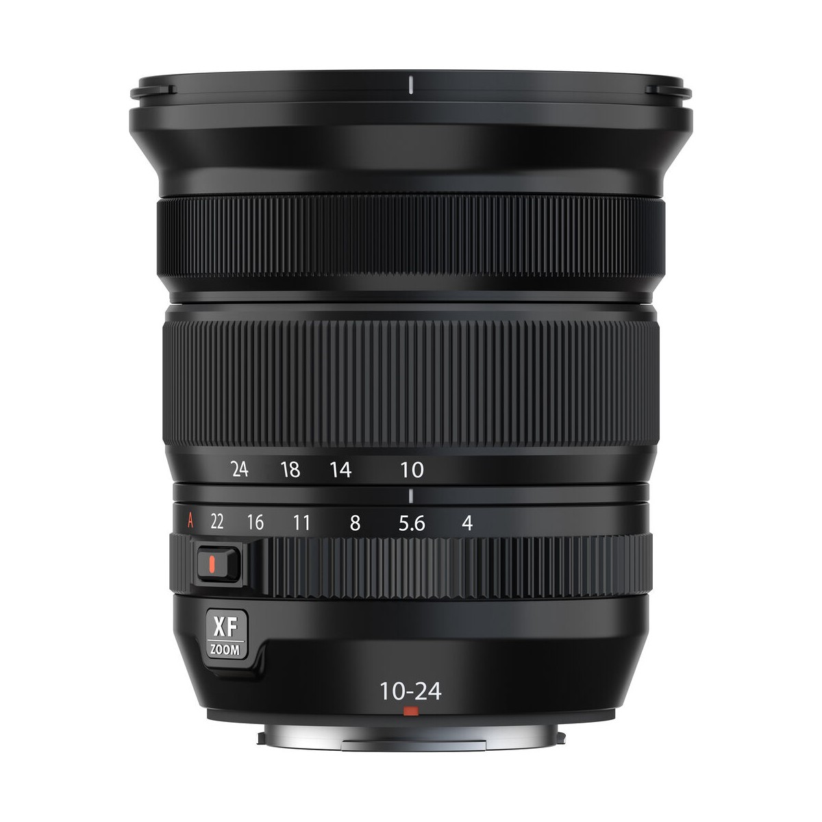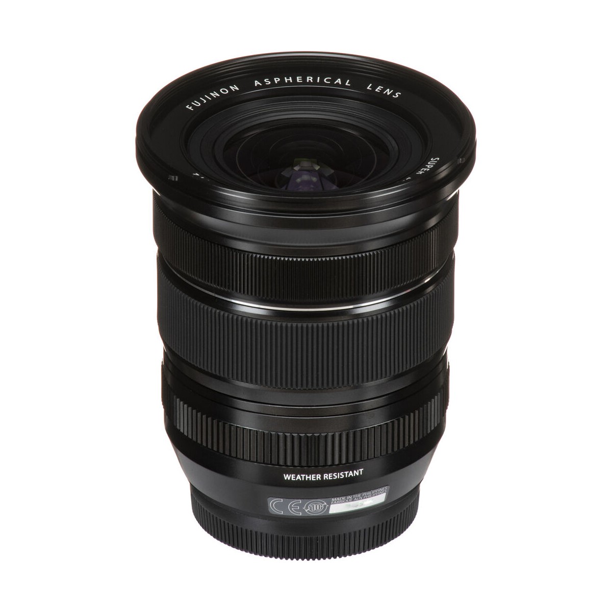 لنز XF 10-24mm f/4 R OIS WR فوجی یک لنز واید کارآمد، مقاوم در برابر آبوهوا و با ویژگیهای کنترلی شهودی است. فاصله کانونی معادل این لنز، هنگام استفاده از آن بر روی دوربینهای فول فریم برابر با ۳۶-۱۵ میلیمتر خواهد بود. حداکثر گشودگی دیافراگم f/4 این لنز در بازه زوم ثابت میماند و وجود عدسیهای ELD در چیدمان اپتیکال آن موجب به حداقل رسیدن انواع انحرافات اپتیکال شده است. به لطف استفاده از کوتینگ Super EBC در این لنز، از پدیده فلر و سایهدار شدن سوژهها جلوگیری میشود. این لنز دارای تثبیتکننده تصویر اپتیکال با قابلیت حذف اثر لرزش دوربین تا ۳.۵ استاپ است. این محصول از طراحی جدیدی بهرهمند است که موجب کوچکتر شدن حلقههای تنظیم فوکوس و گشودگی دیافراگم شده است. این لنز در برابر نفوذ آب و گردوغبار مقاوم است و میتوان از آن در شرایط آبوهوایی سخت استفاده کرد.