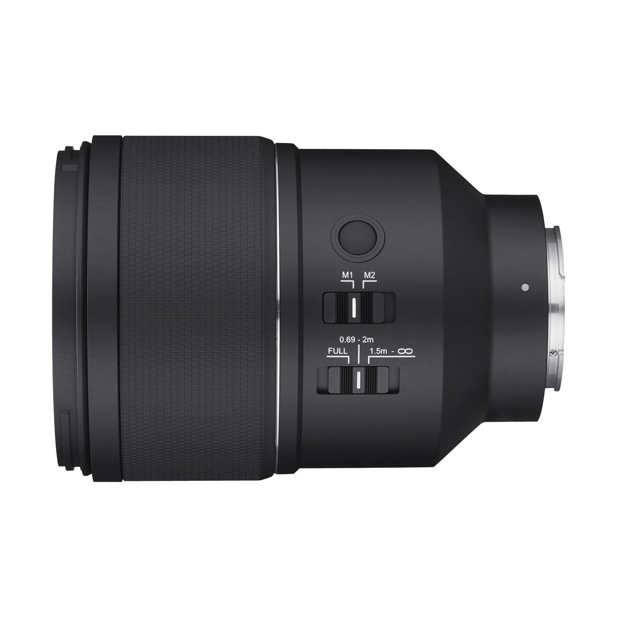 لنز ۱۳۵ میلیمتری سامیانگ برای دوربینهای بدون آینه فول فریم سونی با مانت E طراحی شده است، اما میتوان از آن به همراه دوربینهای با حسگر APS-C نیز استفاده کرد که فاصله کانونی معادل هنگام نصب بر روی این دوربینها برابر با ۲۰۲.۵ میلیمتر خواهد بود.