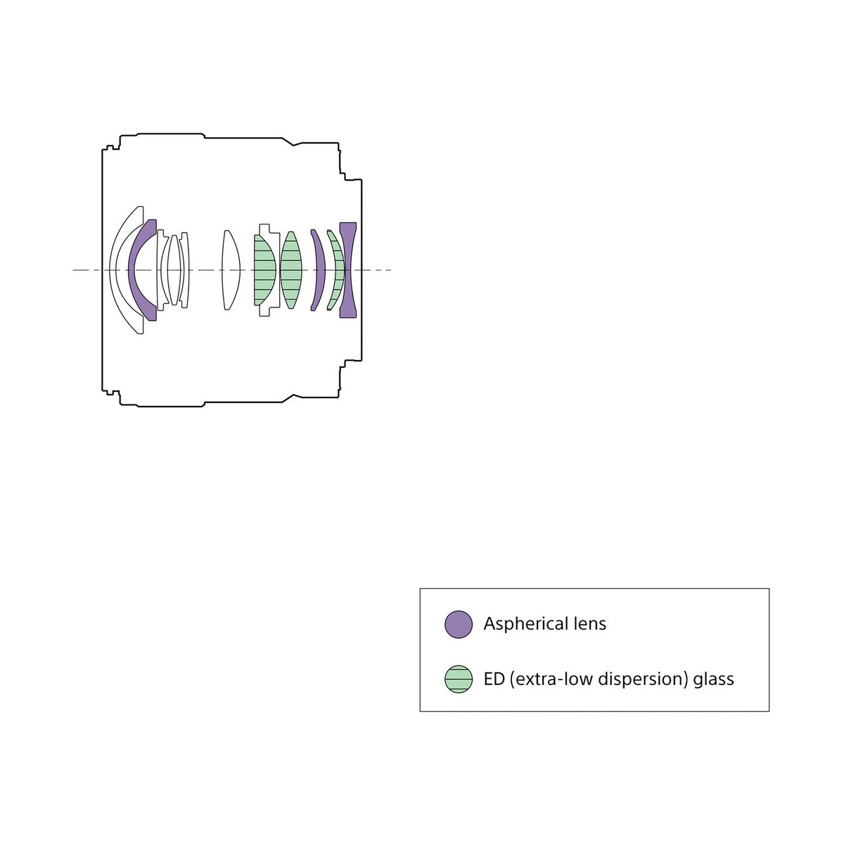 • بهکارگیری از طرح انحصاری اپتیکال Smooth Motion Optics سونی در این لنز موجب به حداقل رسیدن تنفس فوکوس در هنگام تغییر فوکوس شده است. این لنز همچنین با قابلیت Breathing Compensation در هنگام کار با دوربینهای آلفا که از این ویژگی پشتیبانی میکنند، سازگار است.