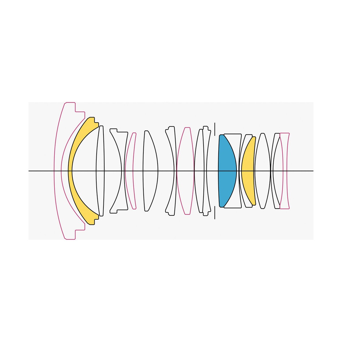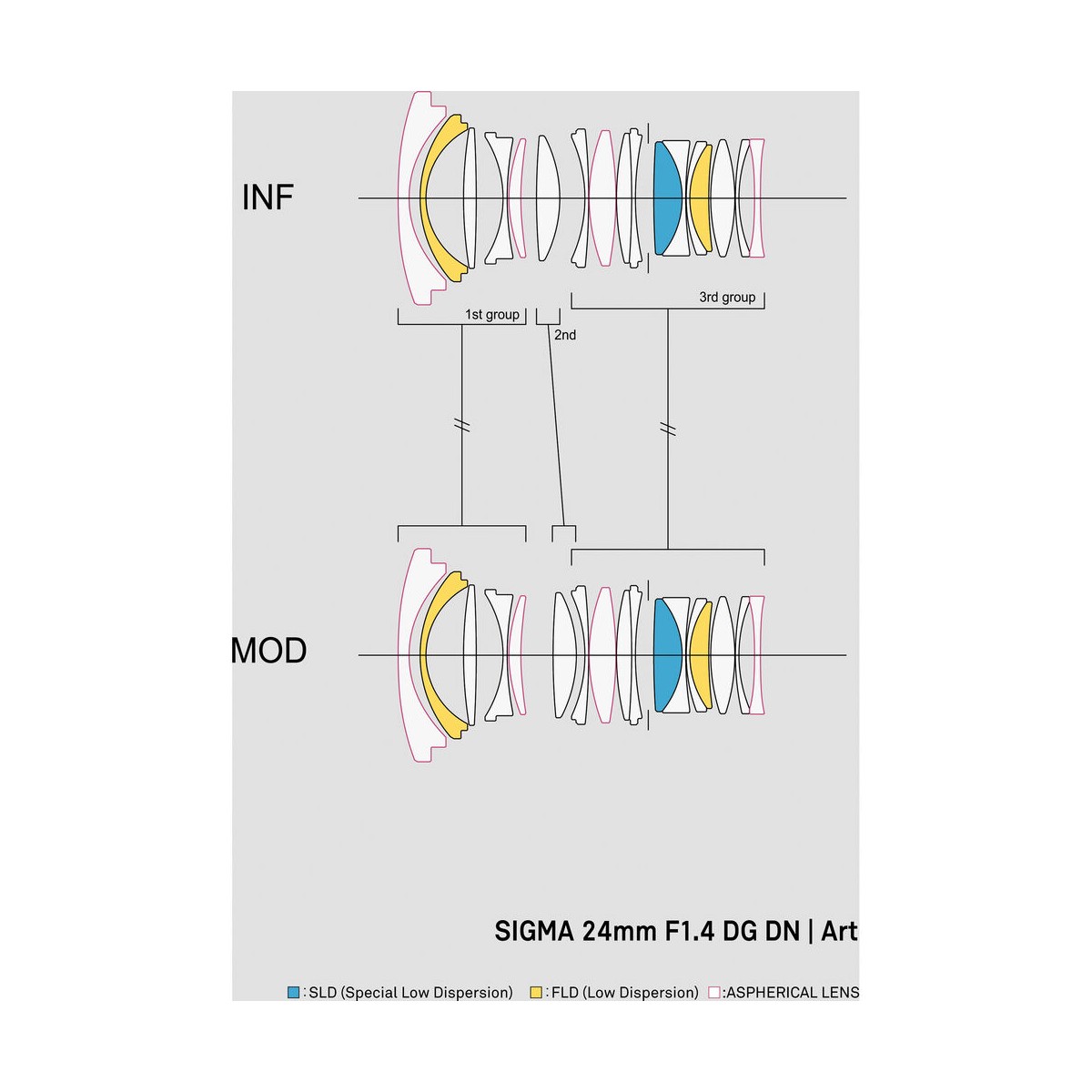 وجود دو عدسی FLD و یک عدسی SLD موجب تصحیح انحرافاتی همچون اعوجاج رنگی در تمام محدوده فوکوس و درنتیجه دستیابی به شارپنس، وضوح و کنتراستی عالی در تصاویر شده است. علاوه بر عدسیهای مذکور، چهار عدسی اسفریکال نیز در چیدمان اپتیکال این لنز وجود دارند که باعث از بین رفتن دیستورشن و به حداقل رسیدن نوعی انحراف رایج در عکاسی نجومی و عکاسی از مناظر در شب به نام (Sagittal coma flare) شده است.