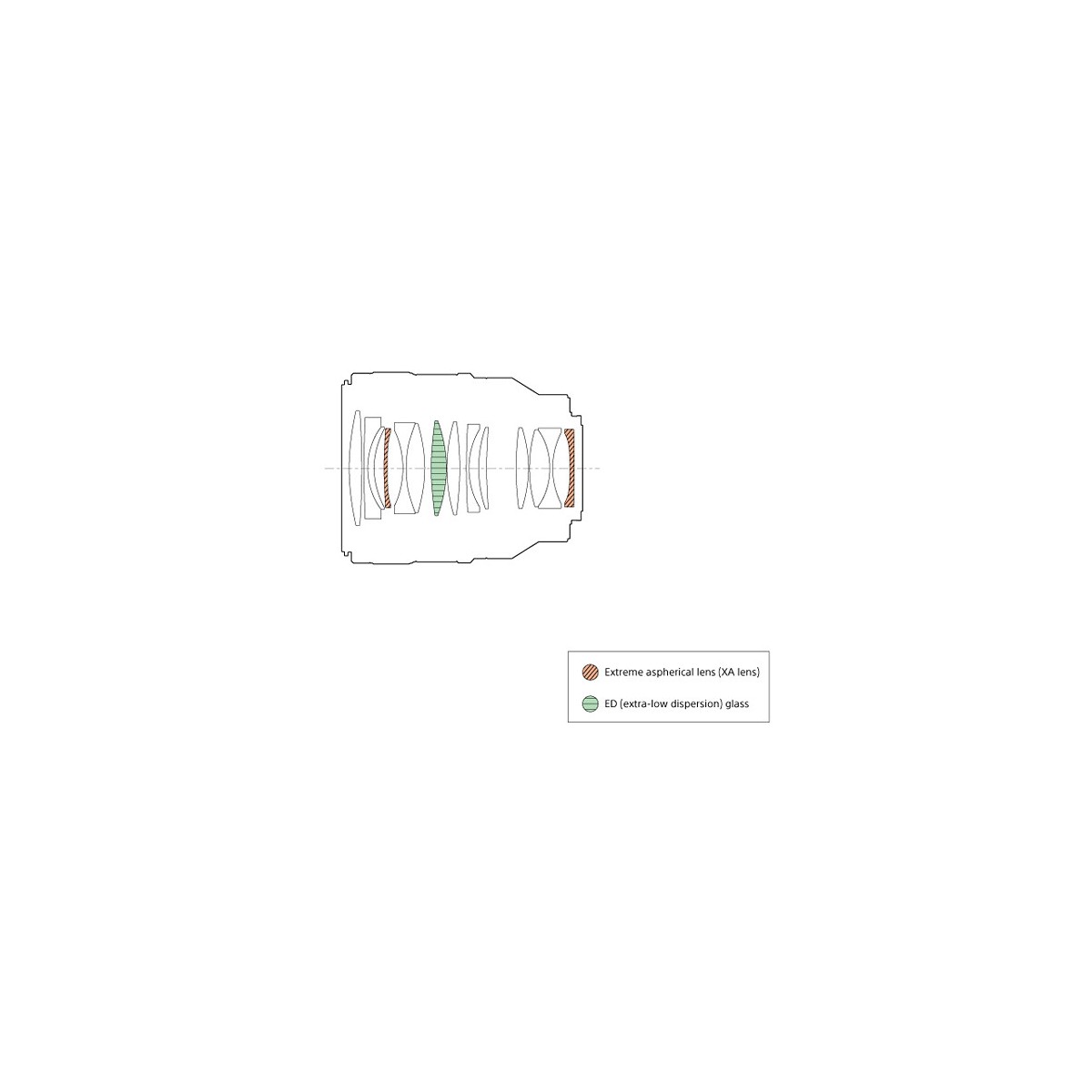 - وجود دو عدسی XA (extreme aspherical) باعث کاهش اعوجاج، دیستورشن و ارائه شارپنس و رزولوشن عالی در تصاویر شده است.