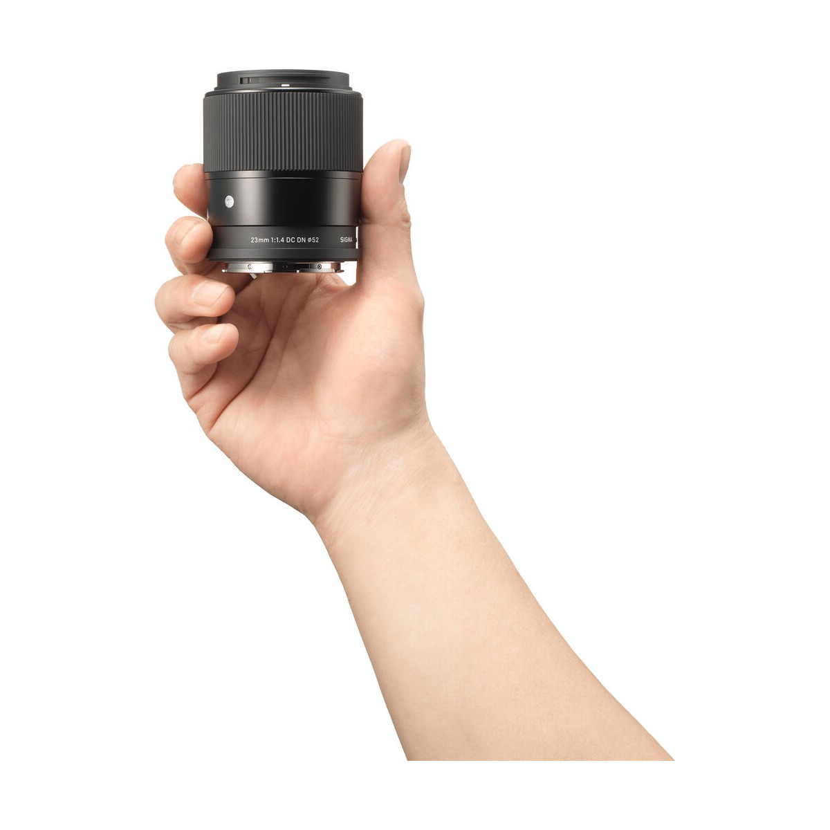لنز ۲۳ میلی‌متری f/1.4 DC DN Contemporary سیگما یک لنز واید پرایم با دیافراگمی بسیار سریع است که برای دوربین‌های بدون آینه با سنسور APS-C طراحی شده است و در صورت نصب بر روی دوربین‌های با سنسور فول فریم، فاصله کانونی معادل آن برابر با ۳۵ میلی‌متر خواهد بود. در هنگام تنظیم گشودگی دیافراگم این لنز بر روی f/1.4، می‌توان به بوکه‌ای بسیار لطیف و محو دست پیدا کرد. سیستم فوکوس خودکار داخلی این لنز دارای موتور استپینگ است و عملکردی سریع و دقیق به همراه دارد که هم در فیلم‌برداری و هم در عکاسی کارآمد است. همچنین حداقل فاصله فوکوس در این لنز برابر با ۲۵.۲ سانتی‌متر است که ازاین‌رو می‌توان از این لنز در عکاسی کلوز-آپ نیز استفاده کرد.