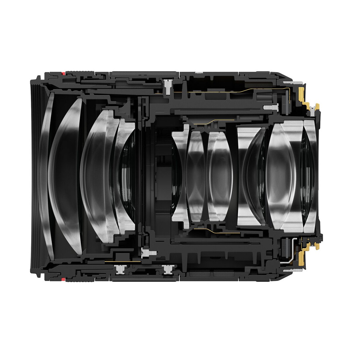 در قلب این لنز، طراحی اپتیکی پیچیدهای قرار دارد که از ۱۴ عدسی در ۱۰ گروه تشکیل شده است. استفاده از یک عدسی UD (Ultra-Low Dispersion) و یک عدسی Aspherical باعث کاهش چشمگیر خطاهای رنگی، اعوجاج و انحرافات نوری میشود. نتیجهی این ترکیب، تصاویری با وضوح بالا، رنگهای طبیعی و کنتراستی دقیق است.