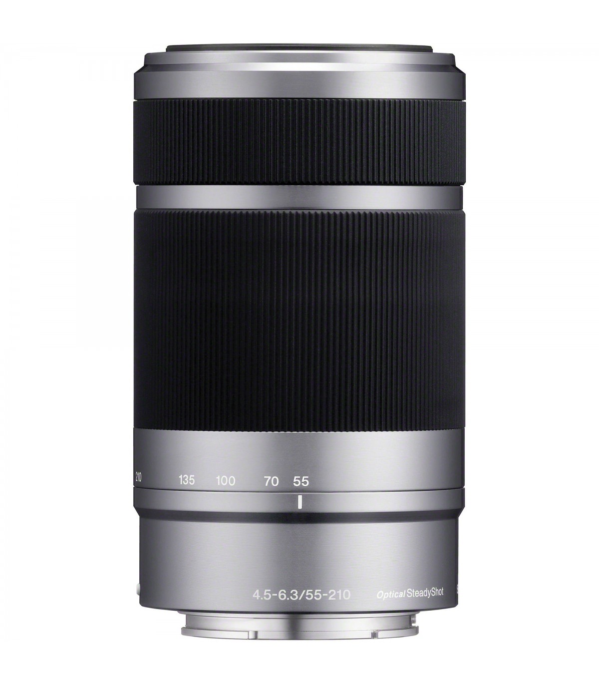 لنز سونی Sony E 55-210mm f/4.5-5.6 OSS یک مکمل مناسب برای مجموعه لنز های زوم است که با فاصله کانونی معادل 82.5-315mm که ایجاد می کند، برای دوربین های مجهز به حسگر APS-C و مانت E-mount سونی تولید و عرضه شده است. طراحی عدسی های این لنز شامل دو المان با پراکندگی بسیار کم نور و دو عدسی اسفریکال می شود تا خطاهای رایج به حداقل برسند. همچنین به لطف استفاده از سیستم لرزشگیر اپتیکال SteadyShot، لرزش های دوربین کاهش یافته و تصاویر شارپ تری ثبت خواهند شد. سیستم فوکوس داخلی نیز فوکوس خودکار سریع و با پاسخگویی بالایی را به ارمغان می آورد که حداقل فاصله مورد نیاز آن برای فوکوس کردن روی سوژه برابر یک متر است. این لنز به یک دیافراگم 7 تیغه گرد مجهز است که بوکه هایی زیبا ایجاد می کند.