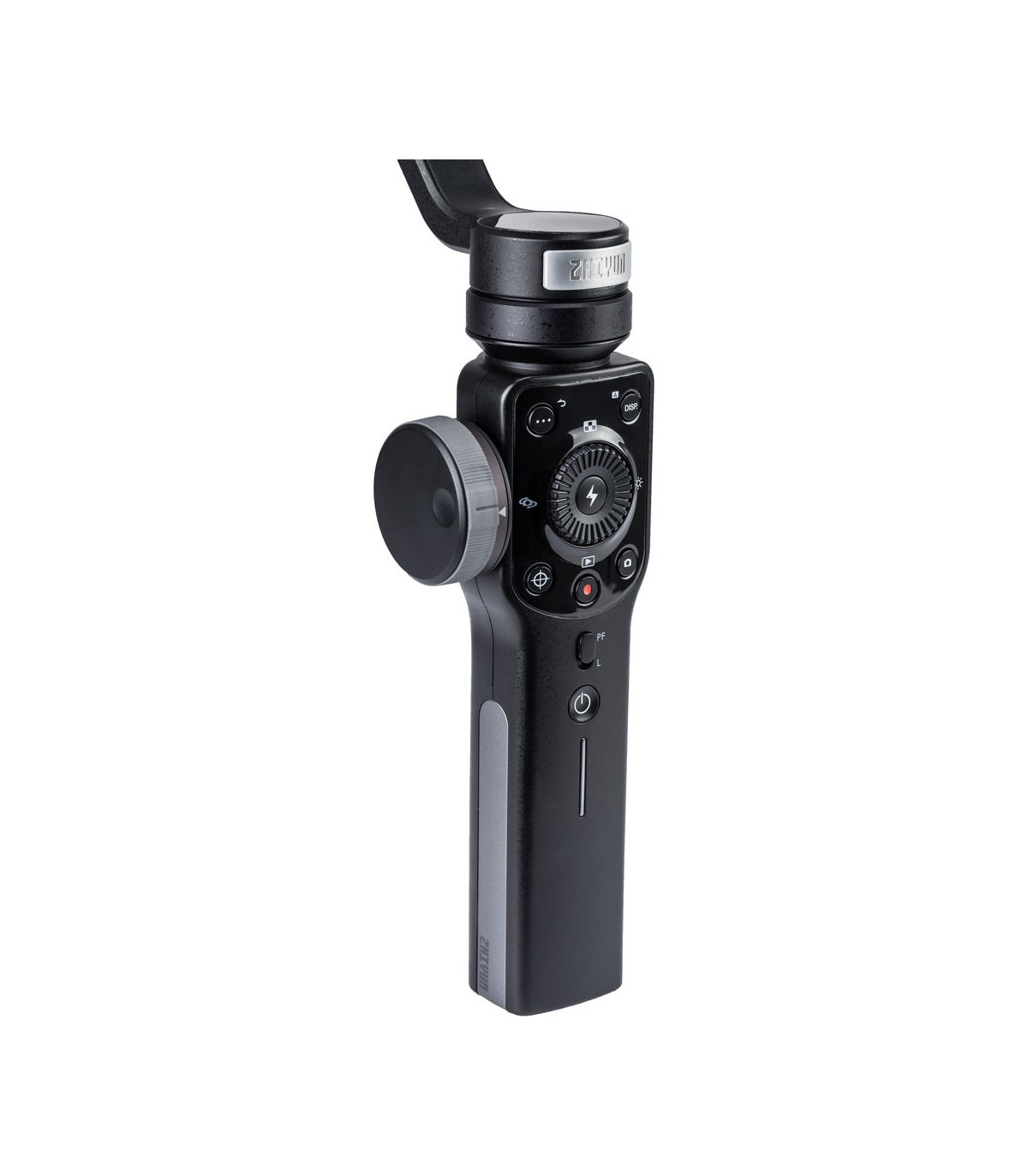 نکته قابلتوجه در مورد این دستگاه آن است که در بخش کناری آنگیمبال یک چرخ قرار داده شده است که با استفاده از آن میتوانید تنظیمات فوکوس و بزرگنمایی را با دقت بالایی انجام دهید.