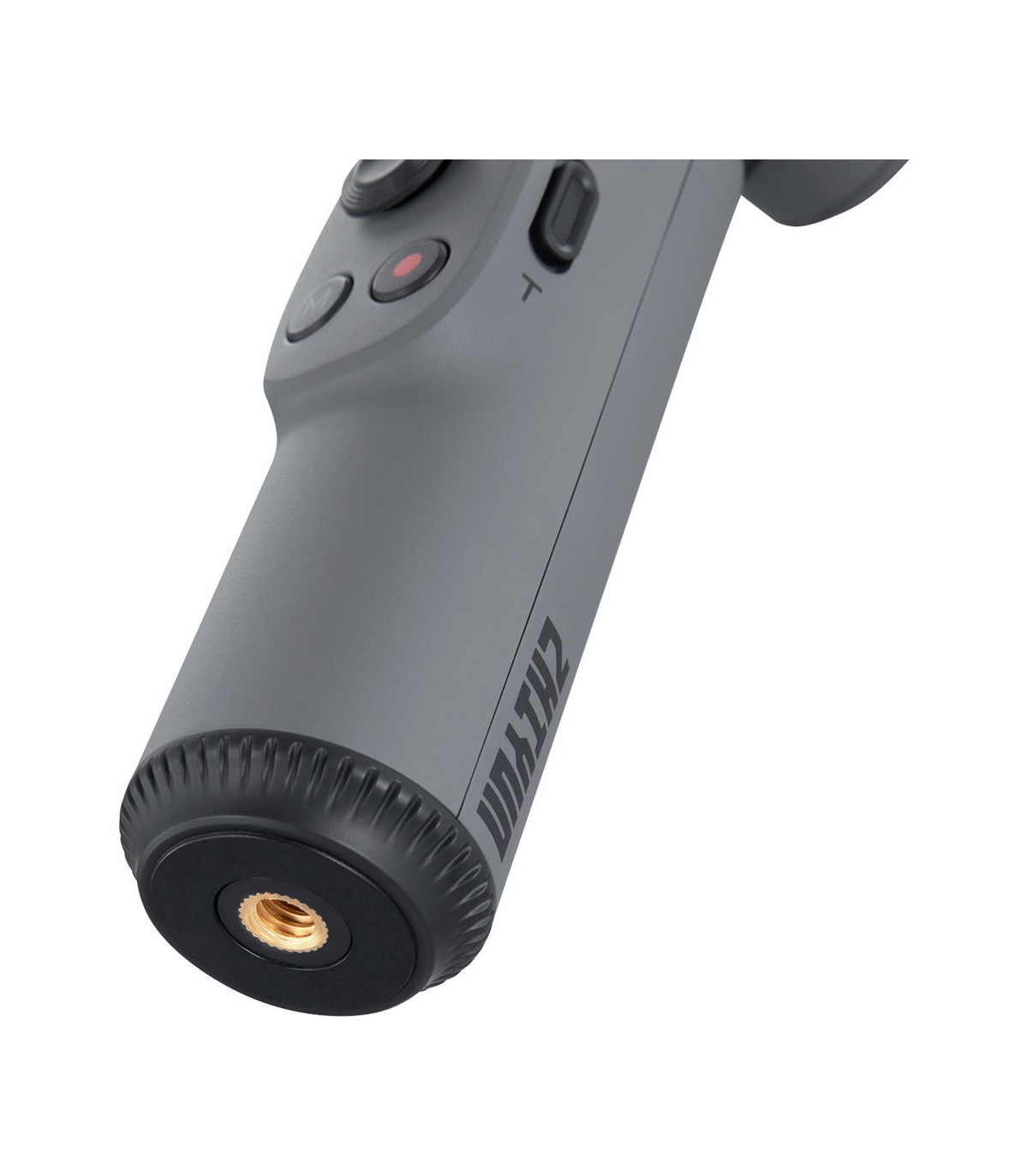 روی بدنه ژیون اسموت X یک جوی استیک برای کنترل محصول تعبیه شده است. این محصول همچنین دارای قابلیت Gesture Control نیز هست. این قابلیت کمک میکند تا کاربر با دست تکان دادن یا نشان دادن علامت V با انگشتان خود، فرمان فشردن شاتر و شروع فیلمبرداری یا عکاسی را به گیمبال و دوربین ارسال کند. این قابلیت بخصوص برای عکسهای دستهجمعی بسیار کاربردی میباشد. در بخش زیرین گیمبال یک شیار ۱.۴ اینچی تعبیه شده که با استفاده از آن میتوانید گیمبال را به سهپایه متصل کنید.