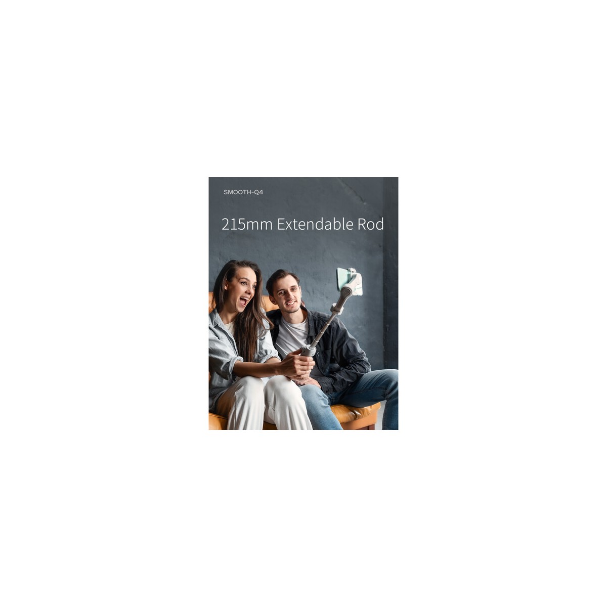 به لطف امکان کنترل گیمبال از روی خود آن و گریپ ارگونومیک بهآسانی میتوان از گیمبال Q4 با یک دست استفاده کرد. چراغهایی روی گیمبال وجود دارد که با مشاهده آنها میتوان به حالت انتخابی و مقدار شارژ باتری پی برد. در انتهای گریپ گیمبال میتوان یک سهپایه کوچک مانت کرد. با هر بار شارژ باتری میتوان حداکثر تا ۱۵ ساعت از این گیمبال استفاده کرد. همچنین یک پورت USB Type-C بر روی گیمبال قرار گرفته است که میتوان از آن برای بهروزرسانی فریمور و شارژ گیمبال استفاده کرد. لازم به ذکر است که شارژ این گیمبال ۲.۵ ساعت طول میکشد. بر روی این گیمبال میتوان گوشیهای هوشمند تا عرض ۹.۵ سانت را مانت کرد.