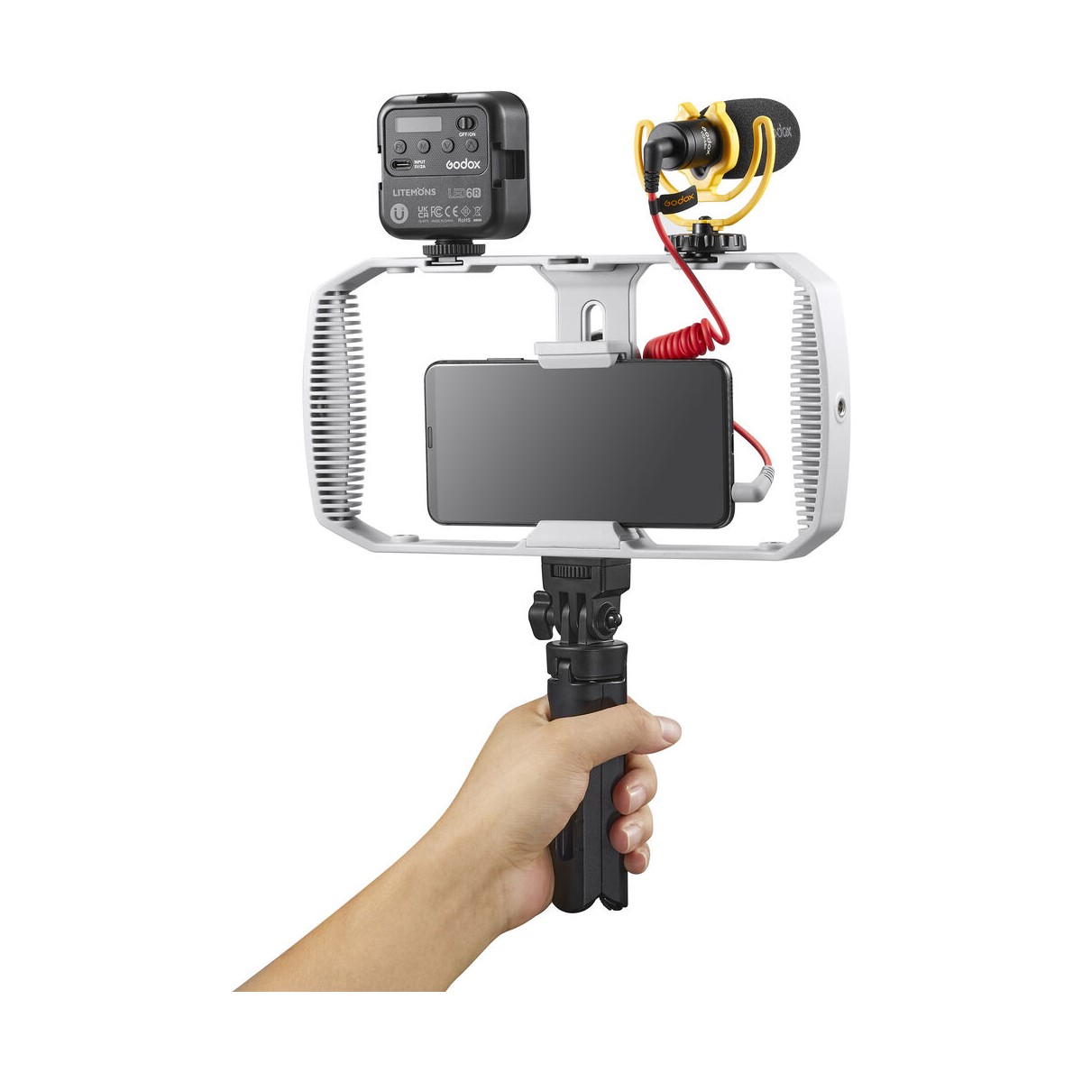 با استفاده از کیت تولید محتوا VK1 گوشی هوشمند شما تبدیل به یک استودیو فیلمبرداری خانگی میشود. این کیت شامل نور ویدیویی LED6R، میکروفون VD-Mic، گریپ و سهپایه کوچک MT01 است. به بیان دیگر تمام ابزاری که برای افزایش کیفیت خروجی ویدیویی هنگام کار با گوشیهای هوشمند نیاز دارید در این کیت وجود دارد.