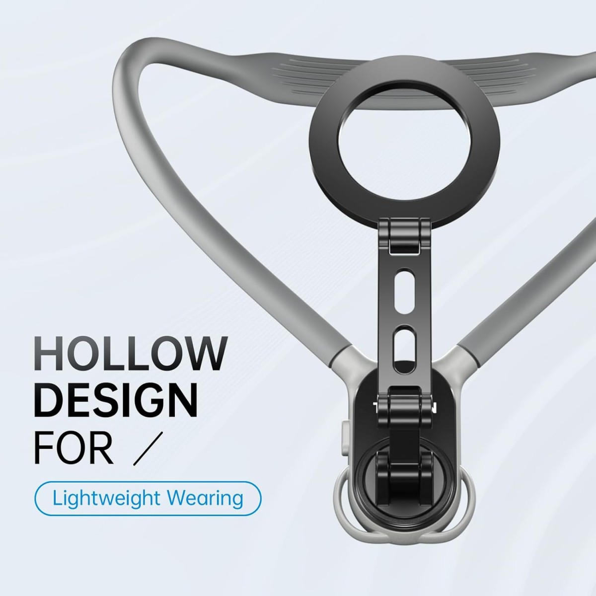 وزن این پایه گردنی نیز بهینهسازی شده است. میله فلزی توخالی این محصول وزن آن را ۵۰ درصد کاهش داده و باعث شده پوشیدن آن راحت و بدون فشار به گردن باشد. با وجود سبک بودن، ساختار محصول بسیار مقاوم و پایدار است و به راحتی انواع گوشیها از آیفون گرفته تا سامسونگ، گوگل پیکسل و موتورولا را پشتیبانی میکند. این ترکیب از سبک بودن و استحکام تجربه کاربری راحت و بدون نگرانی را برای کاربران فراهم میکند.