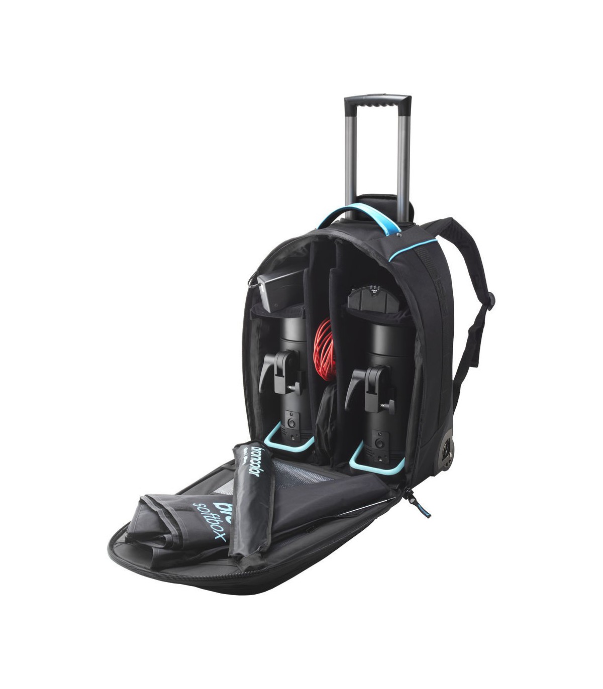 | اقلام کیت | دو هد فلاش ۴۰۰ واتی Siros L </br>دو باتری Li-ion </br>یک شارژر </br>یک چتر مشکی/نقرهای ۸۵ سانتیمتری </br>یک سافتباکس ۶۰ × ۶۰ به همراه حلقهی آداپتور </br>کابل sync </br>کولهپشتی چرخدار مخصوص |