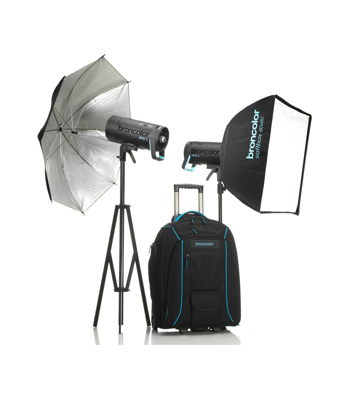 کیت نورپردازی Siros 400 L Outdoor Kit 2 محصول کمپانی Broncolor کیفیت نورپردازی مورد نظر عکاسان را در هر مکانی و فارغ از کابلهای برق و Sync در اختیارشان میگذارد. این کیت شامل دو هد فلاش ۴۰۰ واتی Siros L، دو باتری Li-ion، یک شارژر، یک چتر مشکی/نقرهای ۸۵ سانتیمتری، یک سافتباکس ۶۰x۶۰ به همراه حلقهی آداپتور، کابل sync و یک کولهپشتی چرخدار مخصوص است.