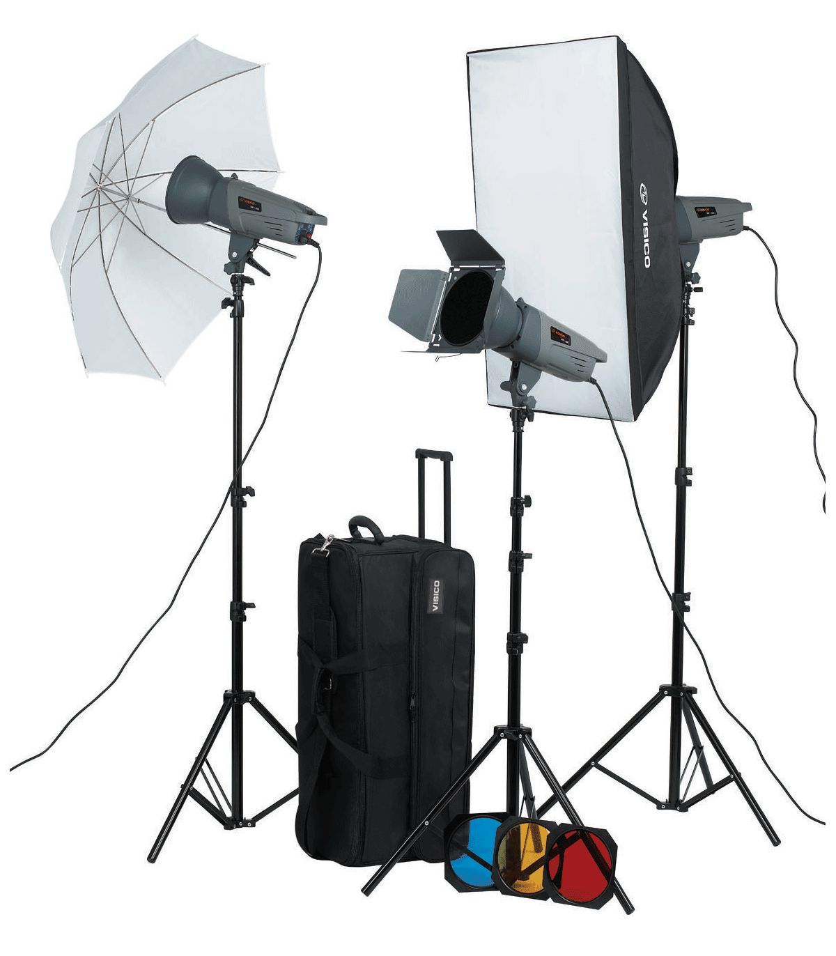 این ست کاربردی فلاش استودیویی شامل سه فلاش ۳۰۰ ژول VE300 Plus Visico میباشد. این سه فلاش با توجه به اینکه هر کدام از وزن ۲/۱ کیلوگرم برخوردار هستند، برای کار در استودیو و محیطهای خارجی، انتخاب مناسبی خواهند بود. بدنه این هدها از فلز حرارت دیده ساخته شده و در برابر گرمای تولید شده لامپها بسیار مقاوم هستند. فلاشهای سری VE کمپانی Visico با برخورداری از یک چیپست الکترونیکی، امکان تنظیم قدرت خروجی فلاش را از ۱/۱ تا ۱.۳۲ حداکثر توان ممکن کرده است. به علاوه جهت نورپردازی دقیق و تعیین موقعیت نورها و همچنین فوکوس بر روی سوژه، یک لامپ مدلینگ با قدرت ۱۵۰ ژول نیز برای هر فلاش در نظر گرفته شده است. در پشت فلاشها یک صفحهنمایش با بکلایت LED طراحی شده است تا پارامترهای مربوط به نور، از قدرت فلاش گرفته تا تنظیم نور مدلینگ، در محیطهای تاریک به آسانی قابل تنظیم باشد. برای تخلیه همزمان و سینک شدن فلاشها با شاتر دوربین، یک رادیو فلاش نیز این کیت وجود دارد که به یکی از فلاشها متصل میشود و دو فلاش دیگر از طریق چشمی اپتیکی با آن سینک خواهند شد. لازم به ذکر است که مدتزمان تخلیه فلاش از ۱/۸۰۰ تا ۱/۱۲۰۰ ثانیه متغیراست. با ابزاری که به همراه این فلاشها عرضه میشود میتوان انواع حالتهای نورپردازی بر روی سوژه را تجربه کرد. کیف حملی که به همراه این ست عرضه میشود نیز به کاربران اجازه میدهد تا لوازم را با خود به محل ببرند.