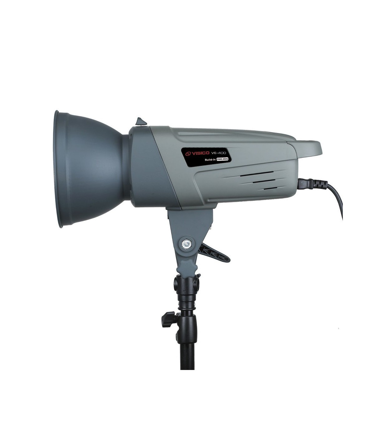 این ست کاربردی فلاش استودیویی شامل سه فلاش ۴۰۰ ژول VE400 Plus Visico میباشد. این سه فلاش با توجه به اینکه هر کدام از وزن ۲/۲ کیلوگرم برخوردار هستند، برای کار در استودیو و محیطهای خارجی، انتخاب مناسبی خواهند بود. بدنه این هدها از فلز حرارت دیده ساخته شده و در برابر گرمای تولید شده لامپها بسیار مقاوم هستند. فلاشهای سری VE کمپانی Visico با برخورداری از یک چیپست الکترونیکی، امکان تنظیم قدرت خروجی فلاش را از ۱/۱ تا ۱.۳۲ حداکثر توان ممکن کرده است. به علاوه جهت نورپردازی دقیق و تعیین موقعیت نورها و همچنین فوکوس بر روی سوژه، یک لامپ مدلینگ با قدرت ۱۵۰ ژول نیز برای هر فلاش در نظر گرفته شده است. در پشت فلاشها یک صفحهنمایش با بکلایت LED طراحی شده است تا پارامترهای مربوط به نور، از قدرت فلاش گرفته تا تنظیم نور مدلینگ، در محیطهای تاریک به آسانی قابل تنظیم باشد. برای تخلیه همزمان و سینک شدن فلاشها با شاتر دوربین، یک رادیو فلاش نیز این کیت وجود دارد که به یکی از فلاشها متصل میشود و دو فلاش دیگر از طریق چشمی اپتیکی با آن سینک خواهند شد. لازم به ذکر است که مدتزمان تخلیه فلاش از ۱/۸۰۰ تا ۱/۱۲۰۰ ثانیه متغیراست. با ابزاری که به همراه این فلاشها عرضه میشود میتوان انواع حالتهای نورپردازی بر روی سوژه را تجربه کرد. کیف حملی که به همراه این ست عرضه میشود نیز به کاربران اجازه میدهد تا لوازم را با خود به محل ببرند.