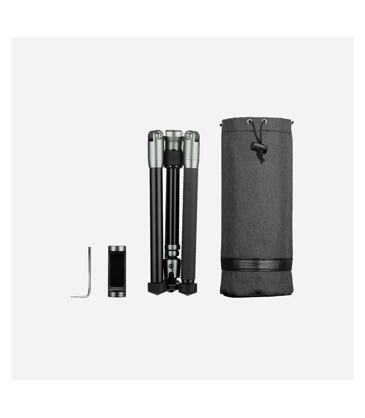 این سهپایه علاوه بر ظاهر زیبا و کیفیت بالای خود، امکانات و ویژگیهای بسیاری را در اختیار شما قرار میدهد. با استفاده از این محصول میتوانید به عکاسی با دوربینهای دیجیتال سبکوزن و همچنین گوشیهای هوشمند بپردازید. به همراه این سهپایه یک بالهد و همچنین نگهدارنده مخصوص گوشی موبایل نیز عرضه میشود که با استفاده از آن میتوانید به آسانی گوشی هوشمند خود را به وسیله متصل کرده و به عکاسی و فیلمبرداری بپردازید. همچنین قادر خواهید بود تا به جدا کردن یکی از پایههای این وسیله، از آن به عنوان مونوپاد استفاده کنید. همراه علاوه بر بالهد و نگهدارنده موبایل، درون جعبه این محصول یک کیف حمل نیز قرار دارد.