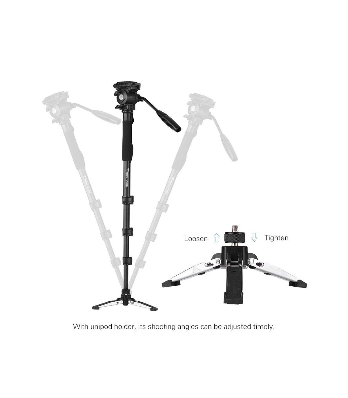 طرای این محصول بصورت تکپایه بوده و دارای پایهای سهبخشی در قسمت زیرین خود است. این ویژگی موجب شده خمکردن سهپایه و تنظیم آن براحتی صورت گیرد. همچنین برای بخش بالایی سه پایه آلومینیومی ویفنگ مدل WT-3958M از یک پن هد استفاده شده که علاوه بر عکاسی، برای استفاده در فیلمبرداری نیز مناسب میباشد. همچنین با استفاده از تراز حبابی تعبیهشده بر روی آن، میتوانید به تنظیم دقیق دوربین و لنز خود بپردازید.
