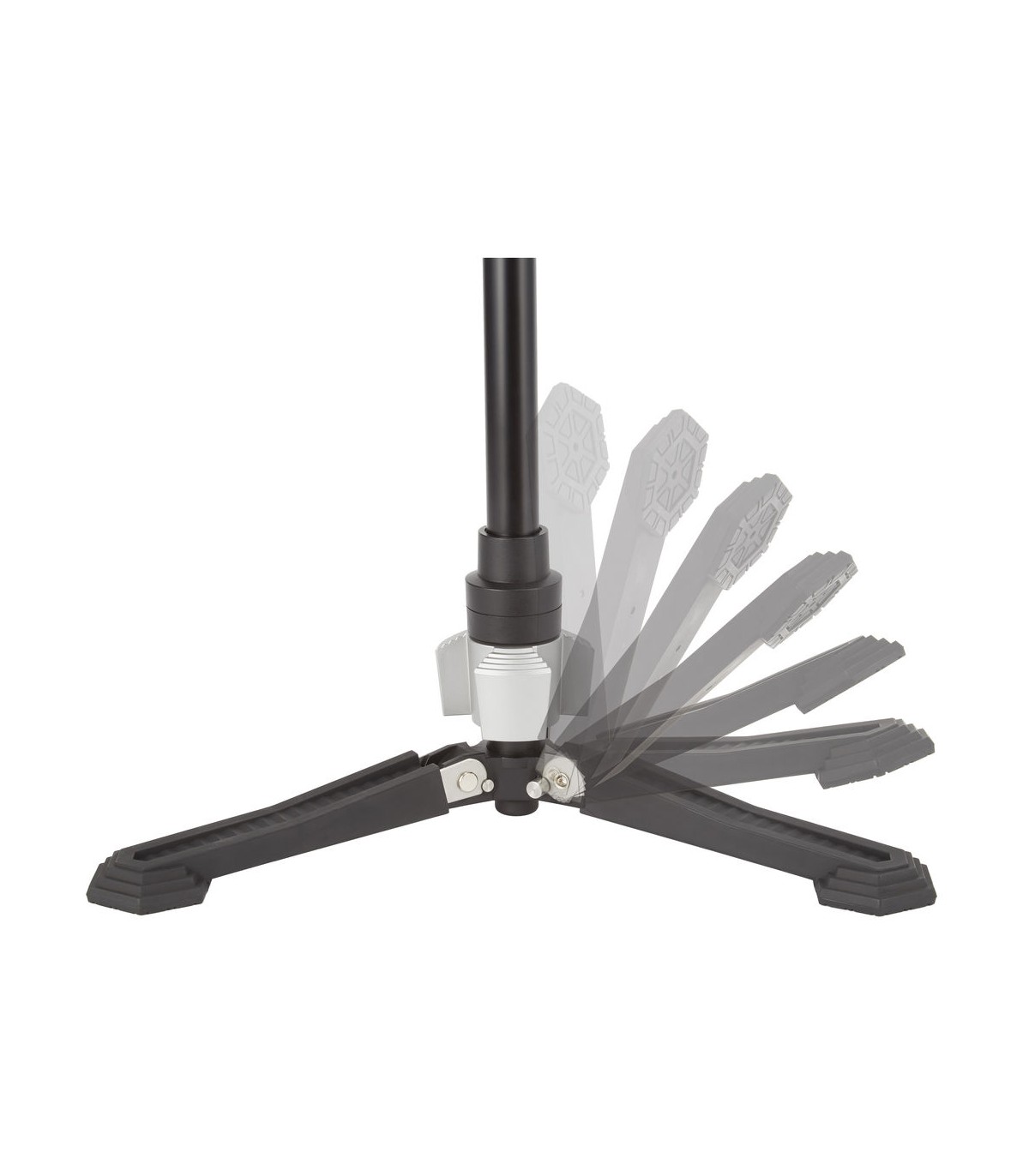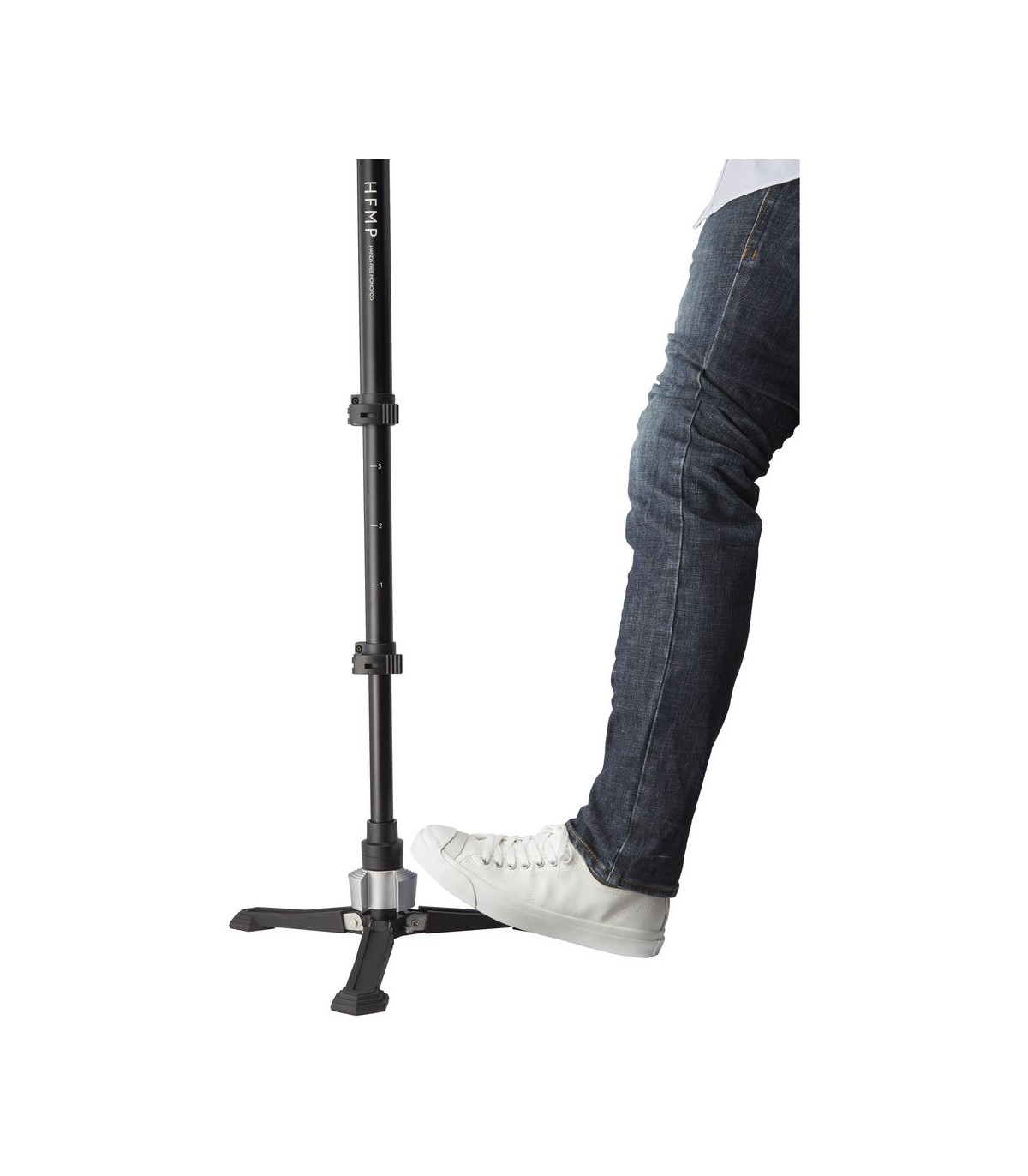 استند سه پایه موجود در کیت تک پایه حرفه ای Libec مدل HFMP پایه های تاشونده دارد و ثبات بالایی برای قرارگیری تک پایه بر روی آن ایجاد می کند. با اتصال تک پایه به این استند می توان آن را تا 20 درجه در هر جهتی خم کرد و قابلیت 360 درجه نیز مستقل از بال هد تک پایه وجود دارد. برای این کار لازم است قفل تعبیه شده استند را با فشردن آن باز شود تا دوربین در زاویه دلخواه تنظیم شود. برای برگرداندن تک پایه به وضعیت اصلی نیز کافیست بار دیگر قفل فشرده شود تا تک پایه به صورت عمودی قفل و ثابت شود.