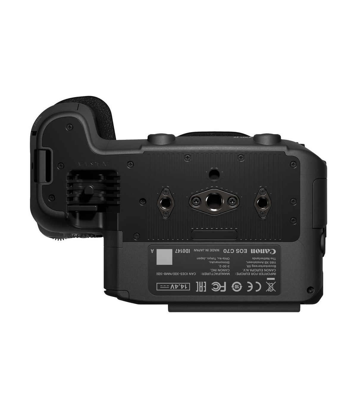 ویژگیهای حرفهای فیلمبرداری این دوربین شامل فیلمبرداری برای مدتزمان نامحدود، فیلتر ND موتوردار در داخل مانت، درگاههای ورودی/خروجی BNC تایم کد و ورودی صدا mini-XLR دوگانه است. کانن EOS C70 همچنین نخستین دوربین سینمایی کانن است که از مانت RF استفاده میکند و به کاربر اجازه میدهد تا از لنزهای سریع و قابلاطمینان RF دوربین این دوربین بهره برده و از کیفیت فوقالعاده بالای آنها بهرهمند شود.