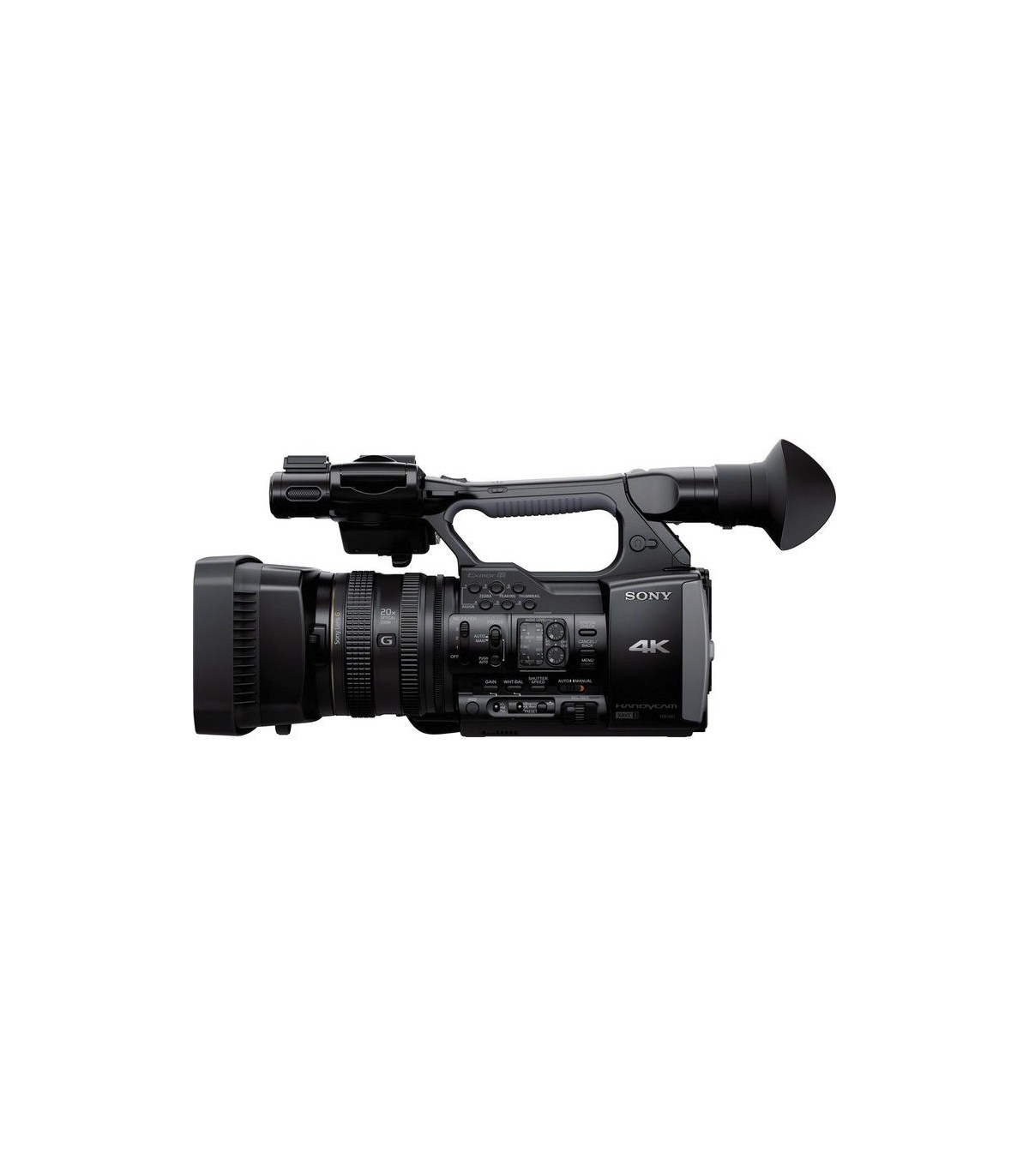 لنز این دوربین از نوع سری G سونی با عدسی Aspherical و ED میباشد که موجب ثبت تصاویری با کیفیت و رنگهای بهتر میشود. این لنز دارای قابلیت زوم اپتیکال 20 برابر با فاصله کانونی واید تا تله 31.5 تا 630 میلیمتر با f1.6 -3.4 میباشد. دیافراگم این لنز از نوع 6 تیغه است و بر روی آن سه حلقه برای در اختیار گرفتن دستی تنظیمات زوم، فوکوس و Iris در نظر گرفته شده است.