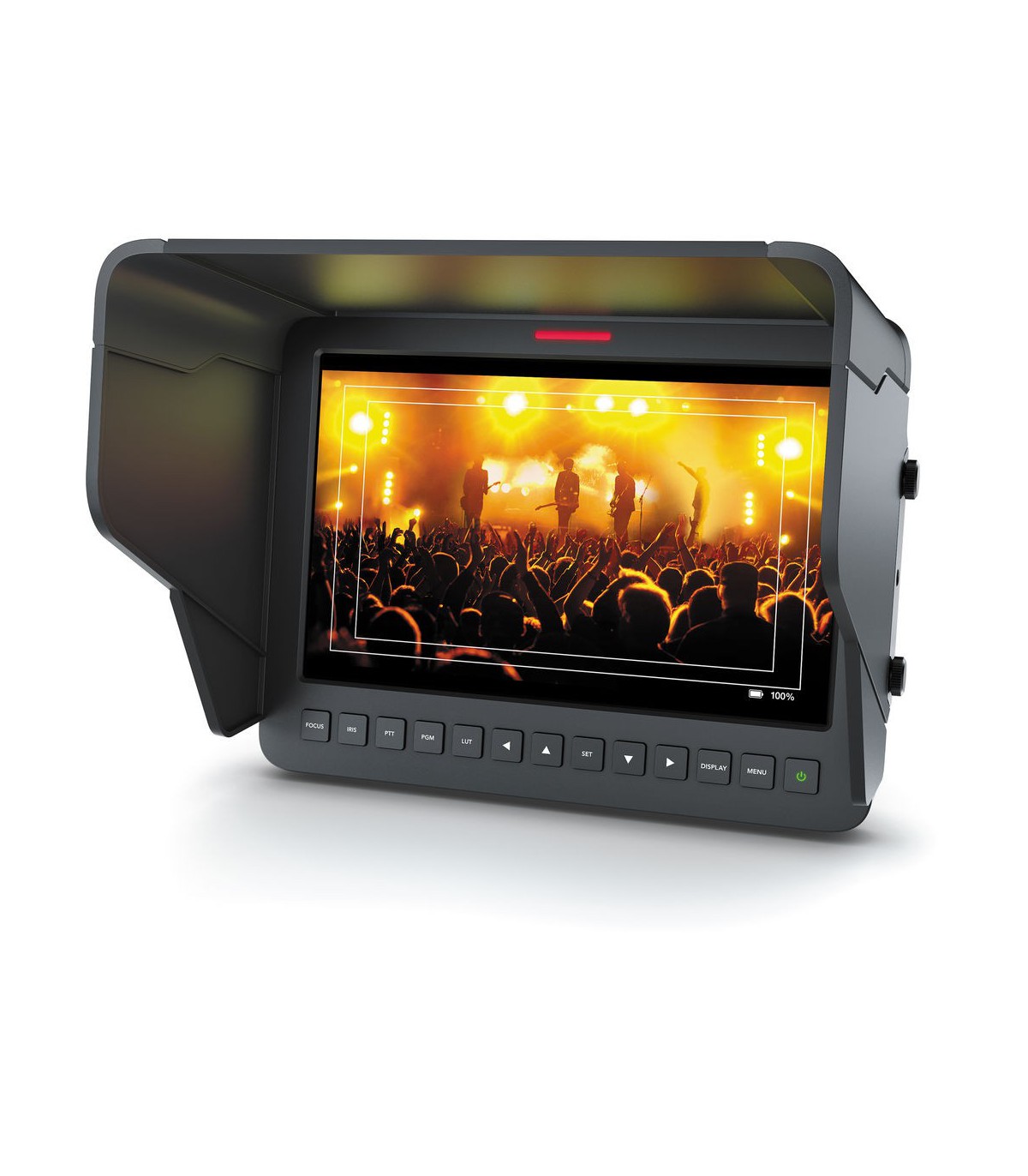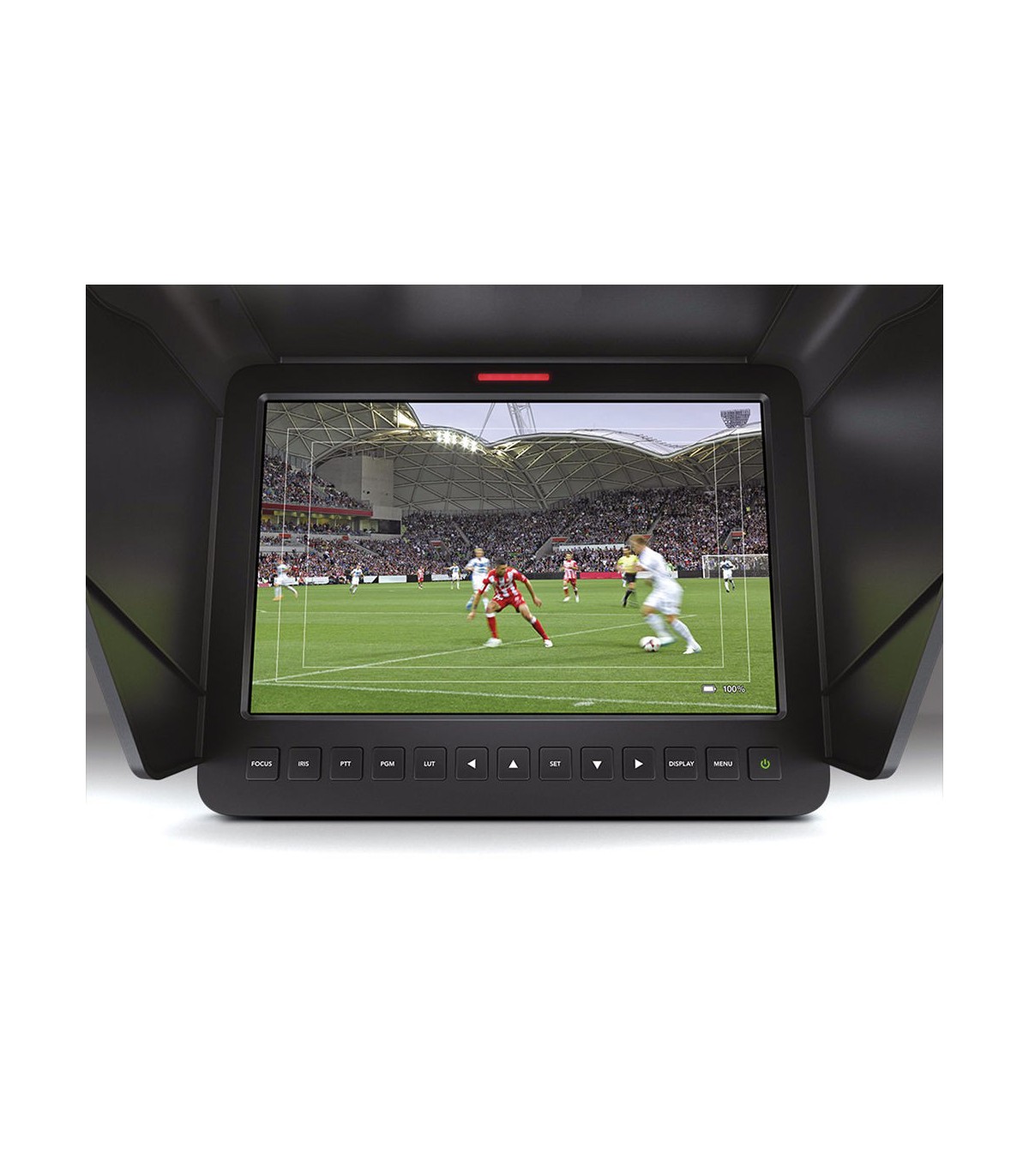 صفحه نمایش این دوربین ۱۰ اینچی و دارای رزولوشن 1920x1080 است که کاملاً مناسب بنظر میرسد. سایبان قابل جداسازی دور این صفحه موجب تسلط بیشتر تصویربرداری روی تصاویر حتی در محیطهای پرنور میشود. تمام دکمههای کنترلی این دوربین در قسمت پایینی صفحه نمایش قرار دارند تا اعمال تنظیمات با عدم تسلط کاربر بر روی تصاویر همراه نشود.