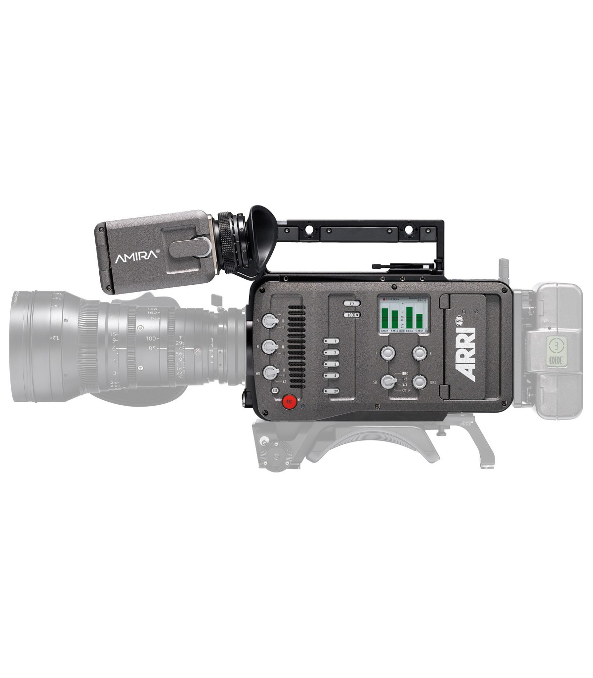 دستگیره بالایی این دوربین بهصورت جداشونده طراحی شده و علاوه بر آن بخش جداشوندهی دیگری هم در قسمت زیرین نصب میشود که قرارگیری AMIRA بر روی شانه را تسهیل میکند. این بخش به شکل کشویی بوده و قابل تنظیم است. تعداد کلیدهای روی بدنه و چیدمان آنها بسیار مناسب است، ضمن اینکه همهی کلیدها دارای نور پسزمینه هستند که استفاده از آنها در شرایط نوری ضعیف و محیطهای تاریک و کمنور به مراتب آسانتر میکند.امکان تغییر و بهروزرسانی سختافزاری این بدنه، در کنار امکان بهروزرسانی نرمافزاری هم قابلیت کارآمد دیگری است که برای یک دوربین ساخت ARRI چیز چندان جدید و شگفتآوری به حساب نمیآید.