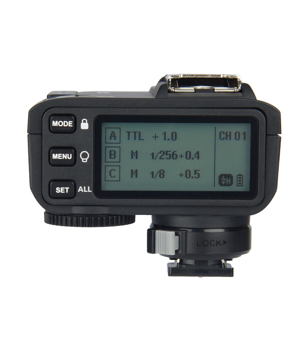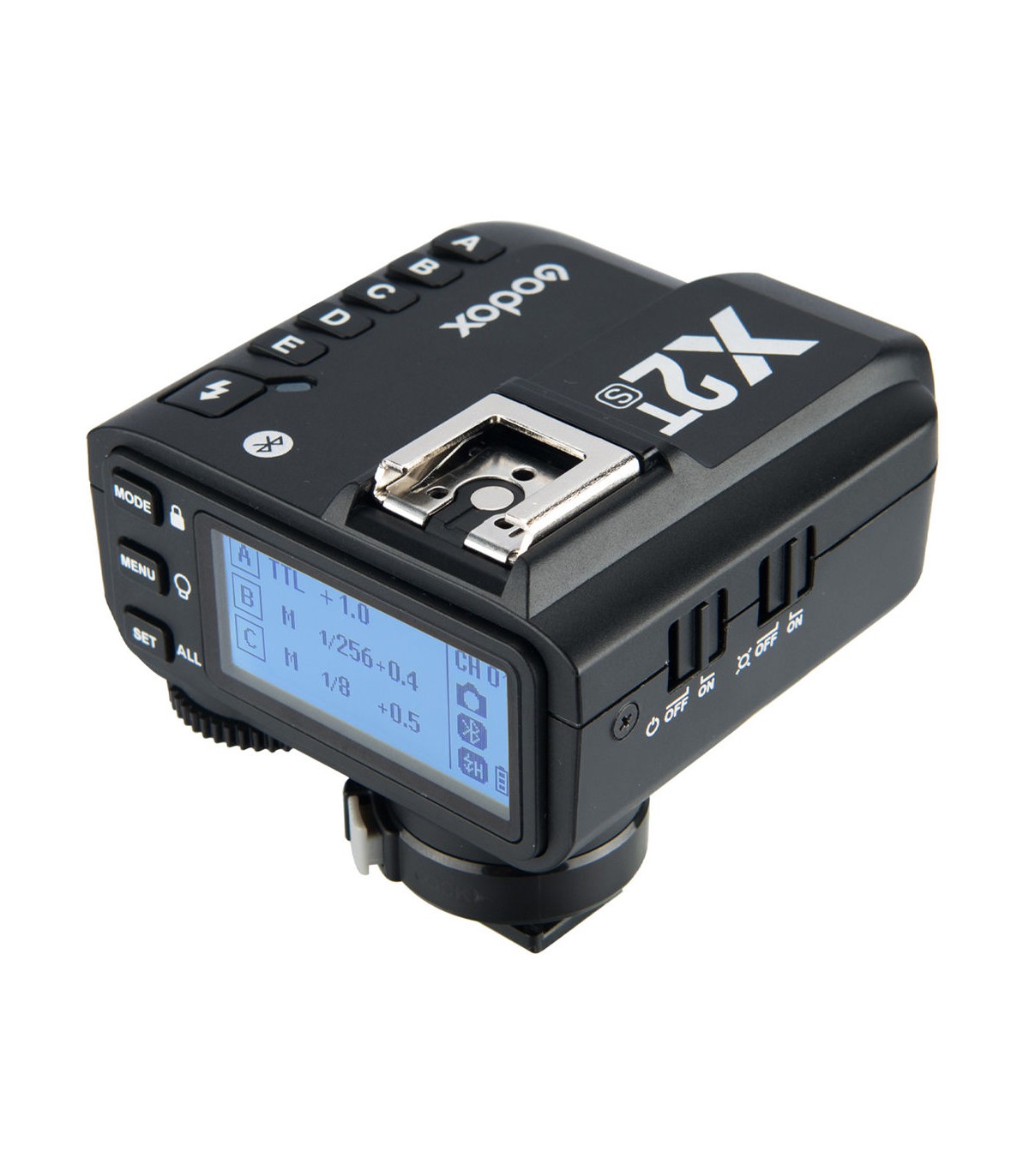 فرستنده بی سیم Godox مدل X2T نیز از این موراد مستثنی نبوده و دارای کیفیت بالایی در زمینه ساخت و عملکرد میباشد. این محصول یک تریگر بیسیم است که برای کار در کنار دوربینهای سونی طراحی و ساخته شده است. تریگر بیسیم فوق از قابلیت TTL پشتیبانی کرده که همین امر موجب شده تا به ابزاری کارآمد برای استفاده در عکاسی حرفهای بدل شود. فرکانس عملکرد آن برابر با ۲.۴ گیگاهرتز بوده و دارای قابلیت HSS تا سرعت ۱/۸۰۰۰ ثانیه میباشد. برد این محصول برابر ۱۰۰ متر است و میتواند با استفاده از ۳۲ کانال و ۵ گروه ارتباط بیسیم، به سایر تجهیزات متصل شود. اتصال آن به دوربین از طریق کفشک صورت گرفته و دارای یک پورت ۳.۵ میلیمتری سینک و یک درگاه USB-C بر روی خود میباشد. این محصول همچنین انرژی خود را از ۲ باتری قلمی سایز AA تامین میکند. در بخش پشتی محصول یک نمایشگر LCD تعبیه شده که میتوانید از آن برای مشاهده و اعمال تنظیمات بهره ببرید. این صفحه نمایش همچنین دارای نور پسزمینه بوده که امکان استفاده از آن در محیطهای کمنور را فراهم ساخته است.