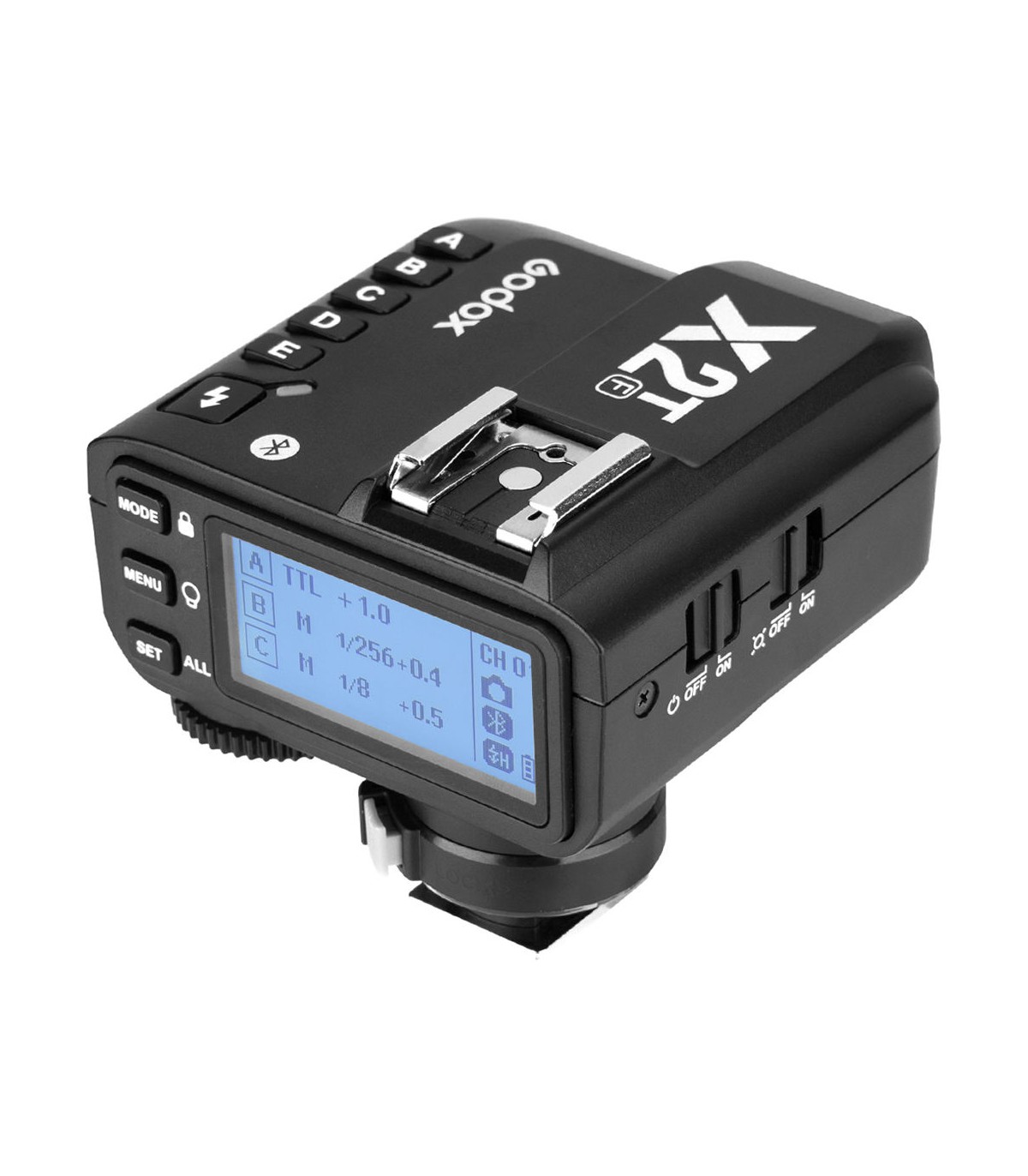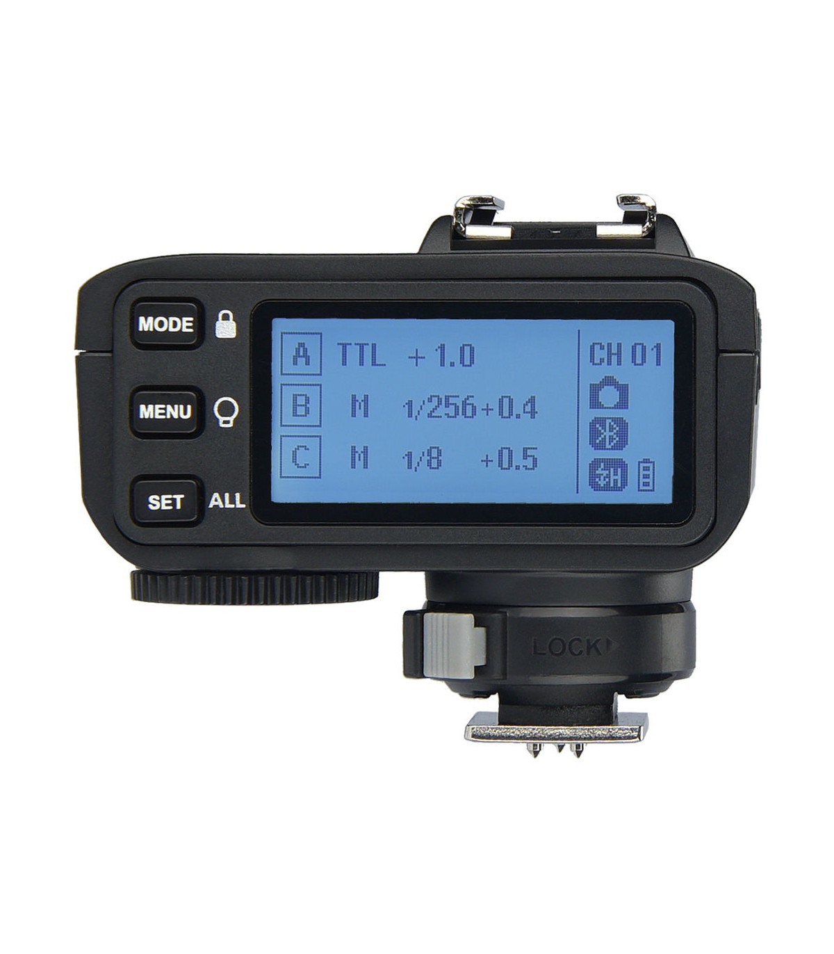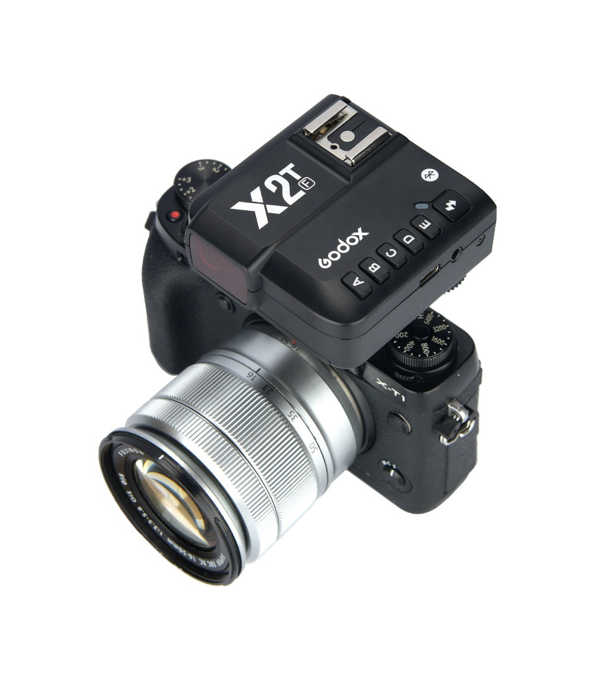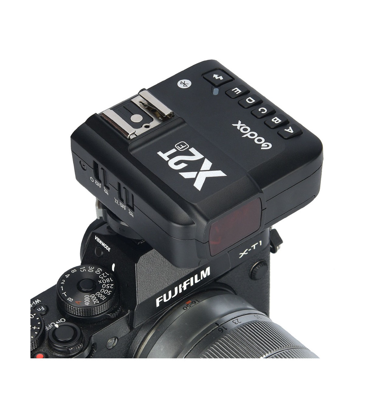 فرستنده بی سیم Godox مدل X2T نیز از این موراد مستثنی نبوده و دارای کیفیت بالایی در زمینه ساخت و عملکرد میباشد. این محصول یک تریگر بیسیم است که برای کار در کنار دوربینهای فوجیفیلم طراحی و ساخته شده است. تریگر بیسیم فوق از قابلیت TTL پشتیبانی کرده که همین امر موجب شده تا به ابزاری کارآمد برای استفاده در عکاسی حرفهای بدل شود. فرکانس عملکرد آن برابر با ۲.۴ گیگاهرتز بوده و دارای قابلیت HSS تا سرعت ۱/۸۰۰۰ ثانیه میباشد. برد این محصول برابر ۱۰۰ متر است و میتواند با استفاده از ۳۲ کانال و ۵ گروه ارتباط بیسیم، به سایر تجهیزات متصل شود. اتصال آن به دوربین از طریق کفشک صورت گرفته و دارای یک پورت ۳.۵ میلیمتری سینک و یک درگاه USB-C بر روی خود میباشد. این محصول همچنین انرژی خود را از ۱ باتری قلمی سایز AA تامین میکند. در بخش پشتی محصول یک نمایشگر LCD تعبیه شده که میتوانید از آن برای مشاهده و اعمال تنظیمات بهره ببرید. این صفحه نمایش همچنین دارای نور پسزمینه بوده که امکان استفاده از آن در محیطهای کمنور را فراهم ساخته است.
