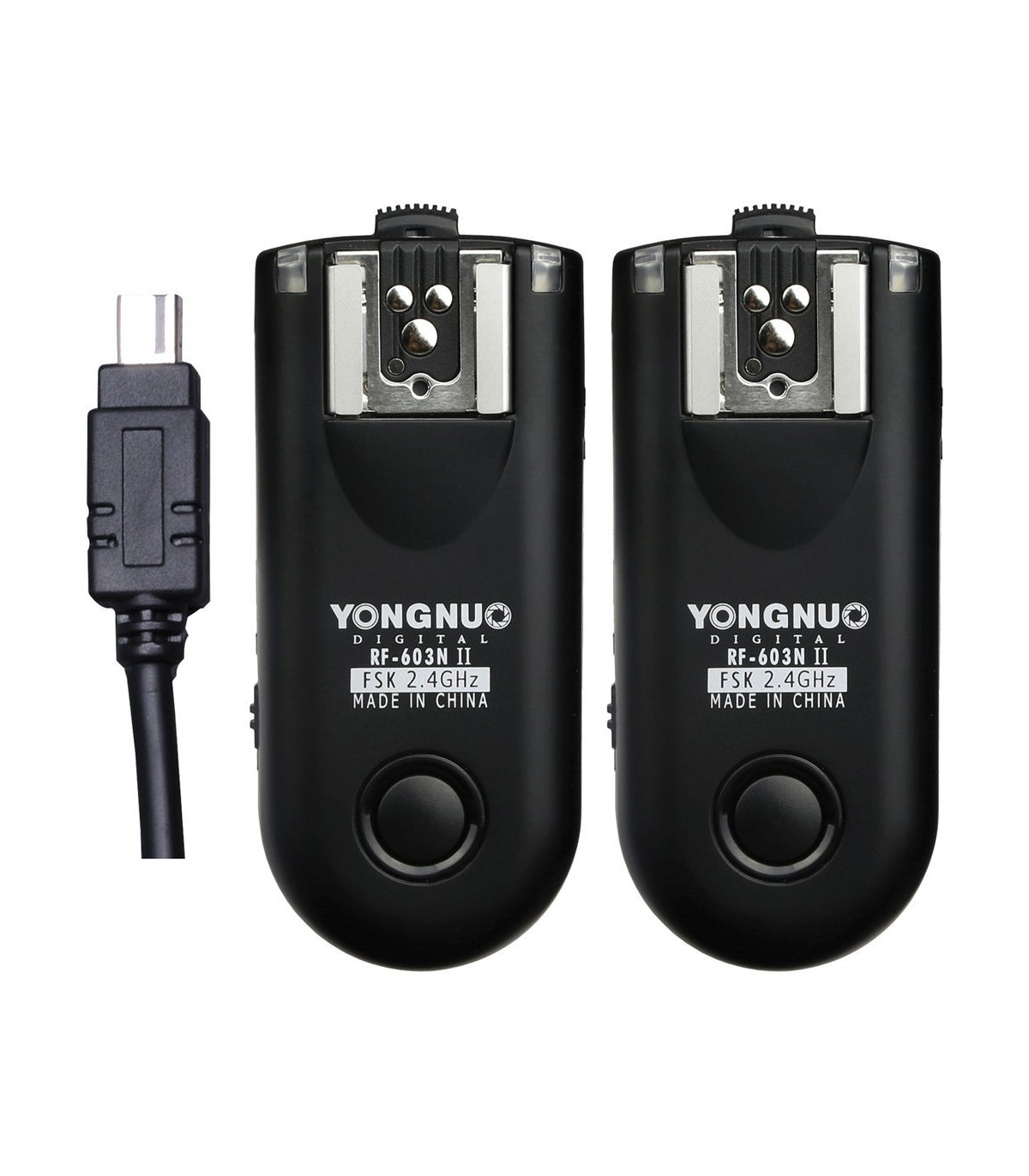 RF-603N II یک کیت فلاش تریگر بیسیم ساخت شرکت Yongnuo میباشد که بر روی فرکانس ۲٫۴ گیگاهرتز کار کرده و هر گیرنده/فرستنده آن از ۱۶ کانال مجزا برخوردار است. هر گیرنده/فرستنده این مجموعه دارای یک کفشک نر رو دوربینی در زیر خود میباشد و بر روی آنها نیز یک کفشک مادگی برای نصب فلاش وجود دارد. برد پایدار این سیستم تریگر حداکثر تا محدوده ۱۰۰ متری میباشد و قابلیت همگامسازی با فلاش تا سرعت ۱/۳۲۰ ثانیه را نیز داراست. ضمنا دکمه شاتر آن نیز دارای عملکردی دو مرحلهای میباشد و از نیمفشار و فشار کامل پشتیبانی میکند.