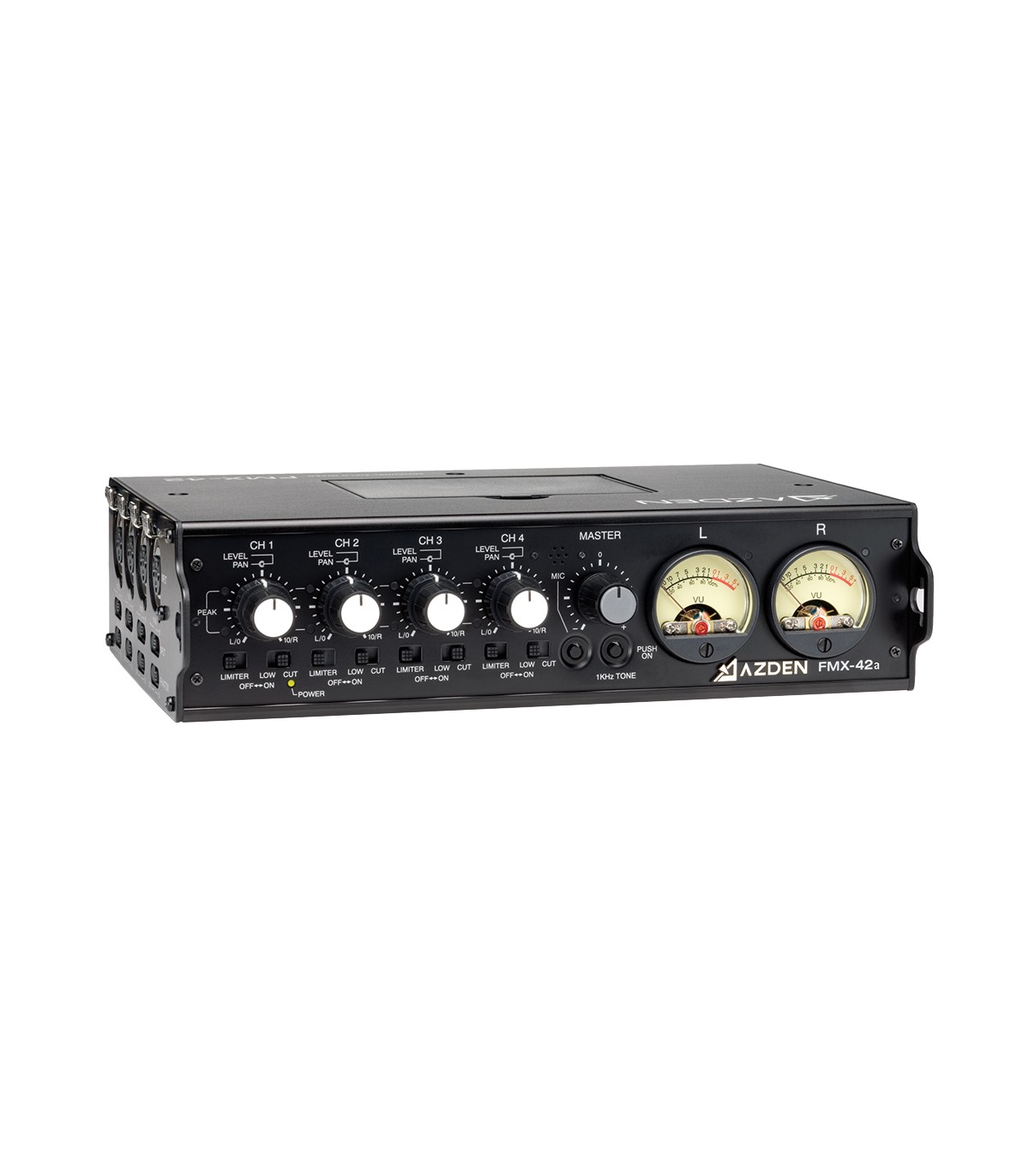 میکسر صدای ۴ کاناله قابل حمل Azden مدل FMX-42a برای مصارف حرفهای و نیمهحرفهای ضبط صدا طراحی و عرضه شده است. این میکسر دارای خروجی بازگشت ۳.۵ میلیمتر و ۱۰ پین مخصوص دوربینهای حرفهای است، ۴ ورودی ۳ پین بالانسشده XLR دارد و هر ورودی قابلیت تأمین فانتوم پاور ۴۸ ولتی دارد. یک جفت خروجی بالانسشده XLR با قابلیت تنظیم سطح صدای خروجی در دو حالت لاین یا میکروفون نیز برای اتصال به انواع دوربینها و رکوردرها در نظر گرفته شده است.
