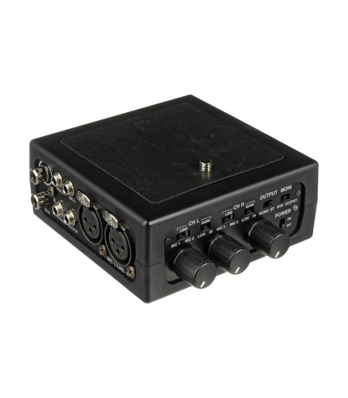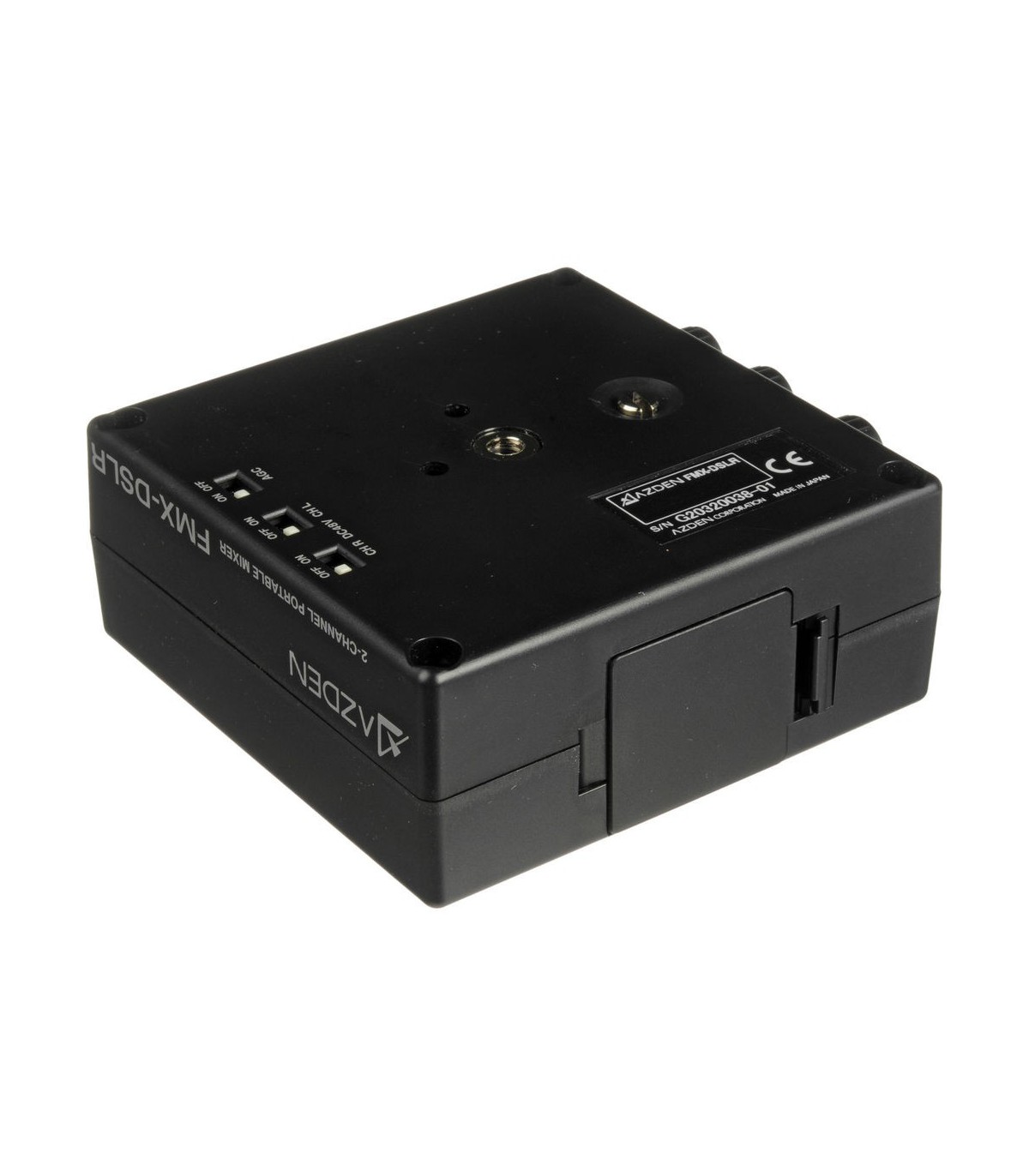FMX-DSLR یک میکسر صدای قابلحمل و جمعوجور از کمپانی Azden است که برای استفاده روی دوربینهای DSLR طراحی شده است. این مدل از ۲ ورودی XLR بهره مند است؛ بدین ترتیب میتوانید میکروفونهای حرفهای را کنار دوربینهای DSLR از طریق خروجی mini به کار ببرید.FMX-DSLR مجهز به کنترل حساسیت خودکار استو در صورت فعال بودن این قابلیت، سیگنال به صورت متداوم به دوربین ارسال میشود. به لطف کنترل حساسیت خودکار، نویز در سیگنالهای صوتی کاهش چشمگیری پیدا میکند. این محصول میتواند مستقیما روی دوربین یا سهپایه نصب شود.Azden FMX-DSLR همانطور که از نامش پیداست، برای کاربرانی که میخواهند میکروفونهای حرفهای را در کنار دوربینهای DSLR به کار ببرند گزینه ایده آلی به نظر میرسد. ورودیهای XLR آن نیز با طیف گستردهای از دستگاههای ضبط صدا مثل میکروفونهای شات گانی، میکروفونهای بیسیم و غیره هماهنگ است. با برخورداری از قابلیت Return، نیز میتوانید به نظارت و پایش صدای نهایی ضبط شده توسط دوربین بپردازید.