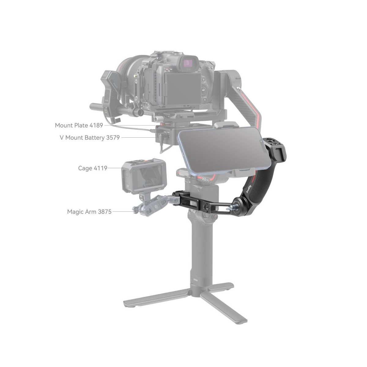 طراحی دسته بهگونهای انجام شده که کاملاً با بدنهی گیمبال هماهنگ است. پوشش مات، فرم ارگونومیک و اتصال مطمئن آن، حسی یکپارچه به کل سیستم میدهد. این هماهنگی نهتنها زیبایی بصری دارد، بلکه کارکرد عملی آن را نیز تقویت میکند.