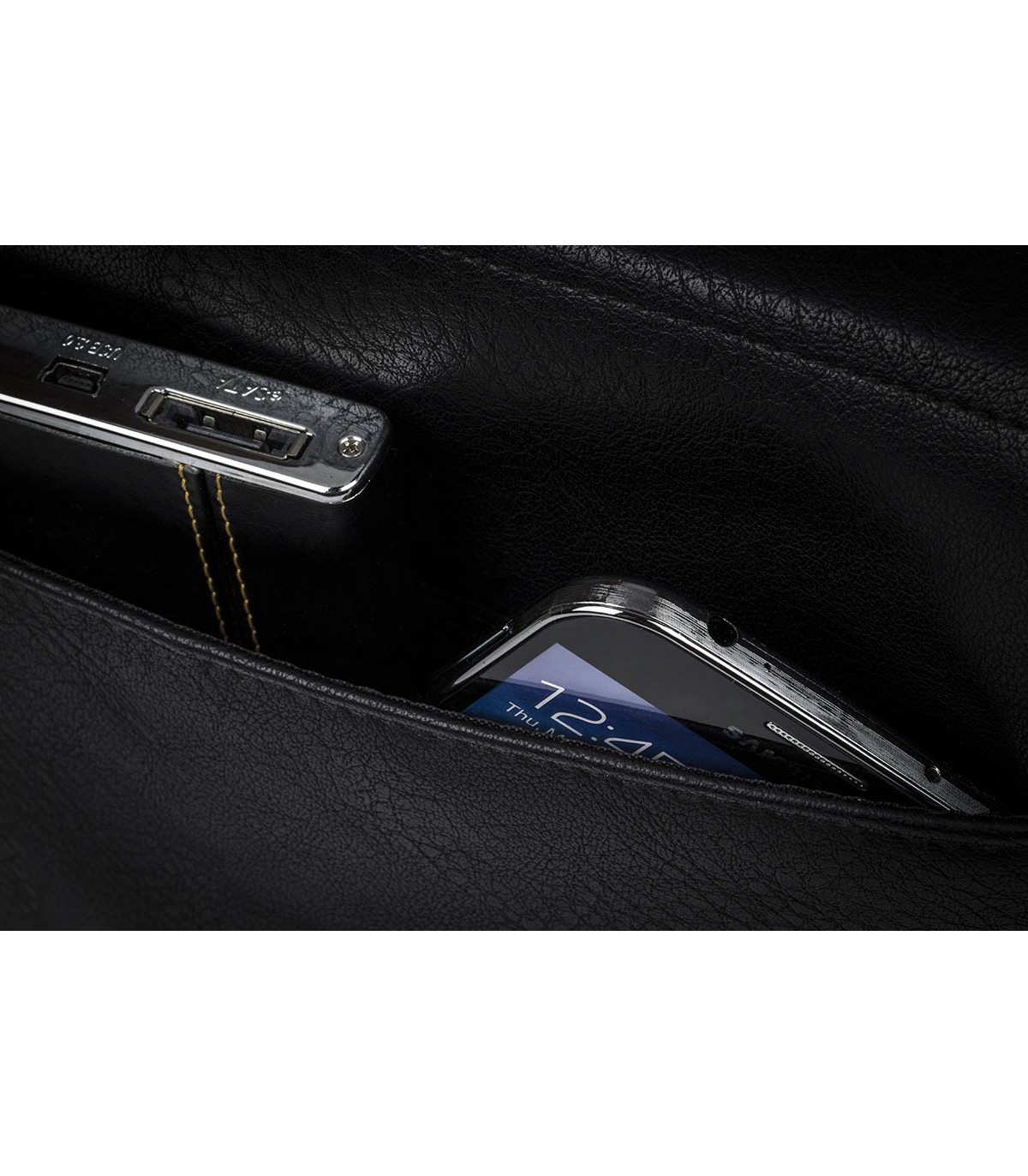 دارای دو جیب داخلی و دو جیب خارجی برای تبلت، کارت حافظه اضافی، لوازم جانبی، گوشی های هوشمند